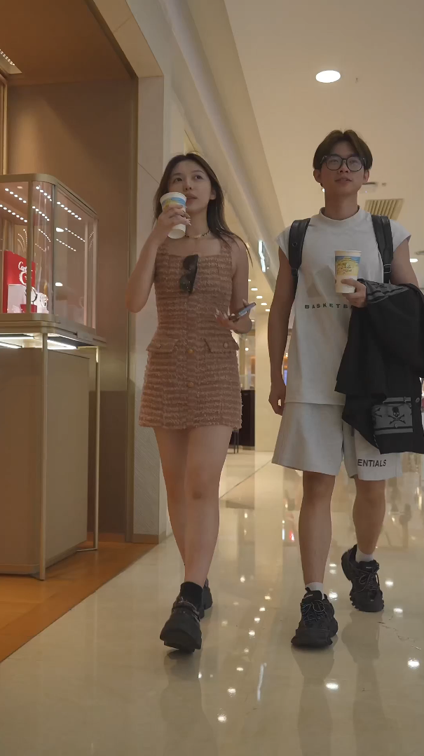 蕾丝包臀裙美女约会逛街..红色内裤镜头前弯腰CD