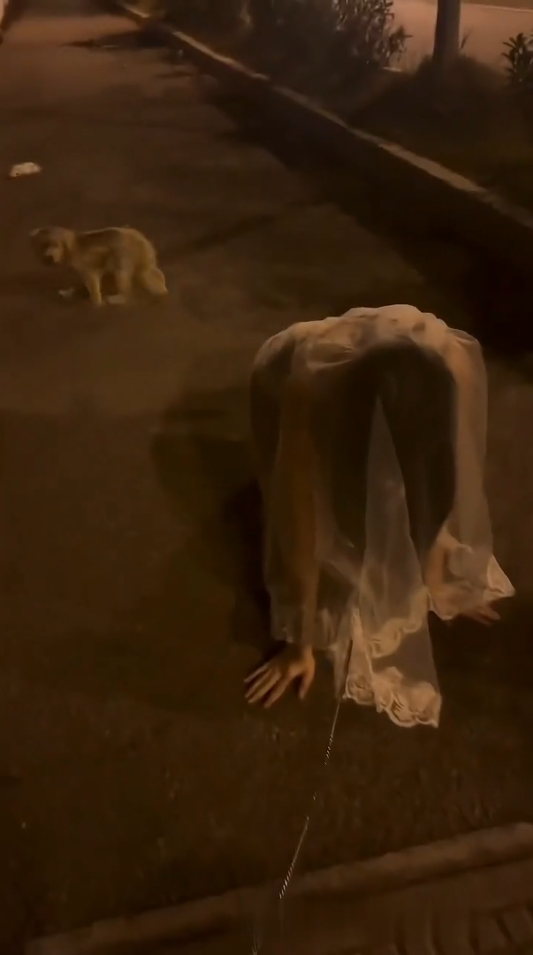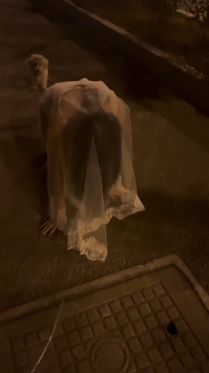 深夜马路遛母狗!无内真空女奴跪爬露穴,主人皮鞭牵链,小公狗在后面狂嗅骚逼