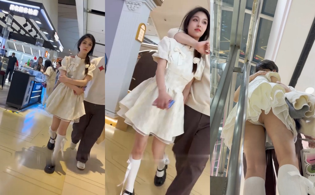商场偷窥猎艳:抄底和男友购物的小姐姐,蕾丝花边内裤下茂盛逼毛春光乍泄