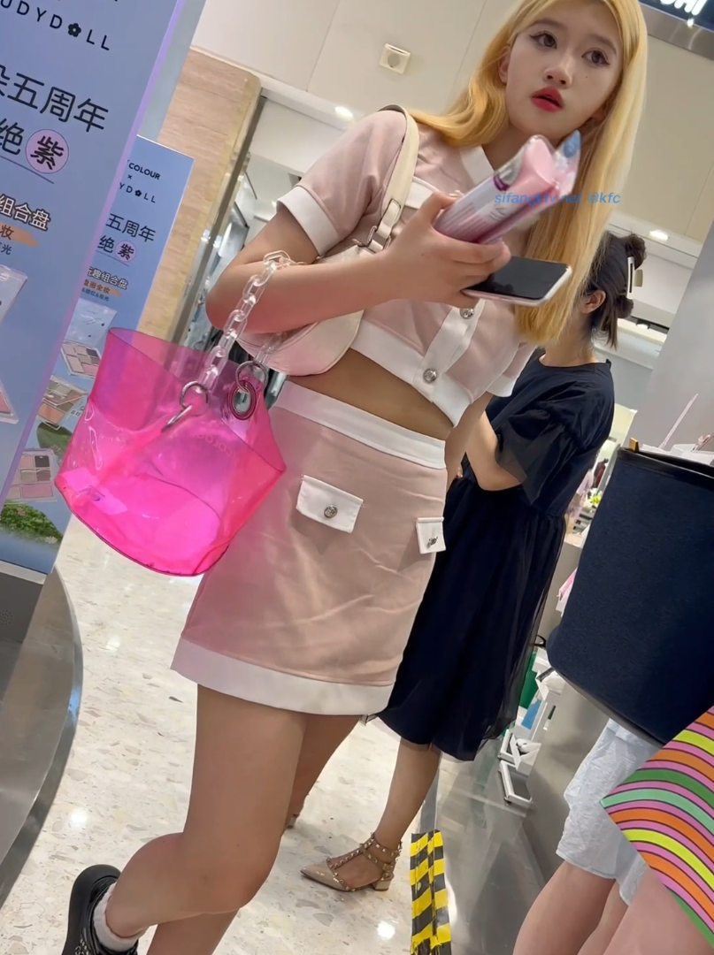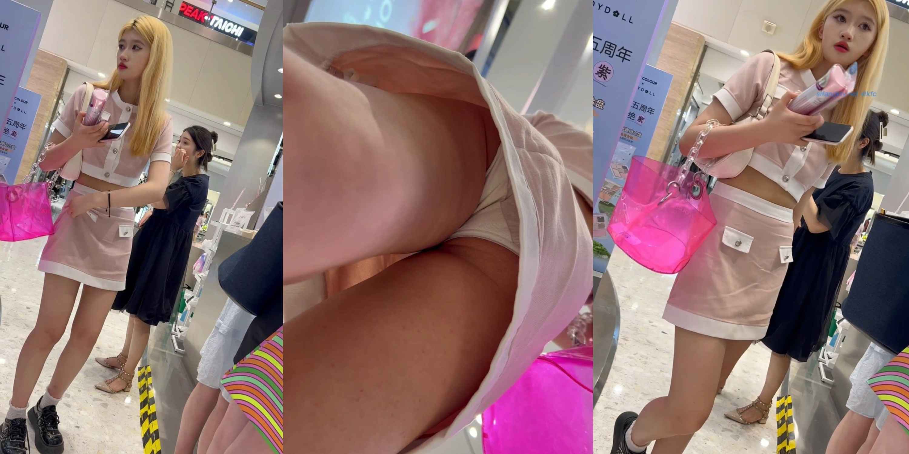 短裙極品身材女神 抄底性感白內褲緊黏粉嫩肉縫