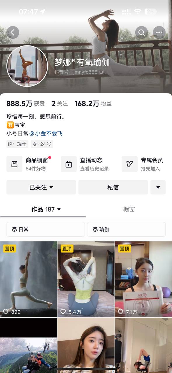 抖音网红梦娜瑜伽真空上镜走光!粉丝福利炸!!!