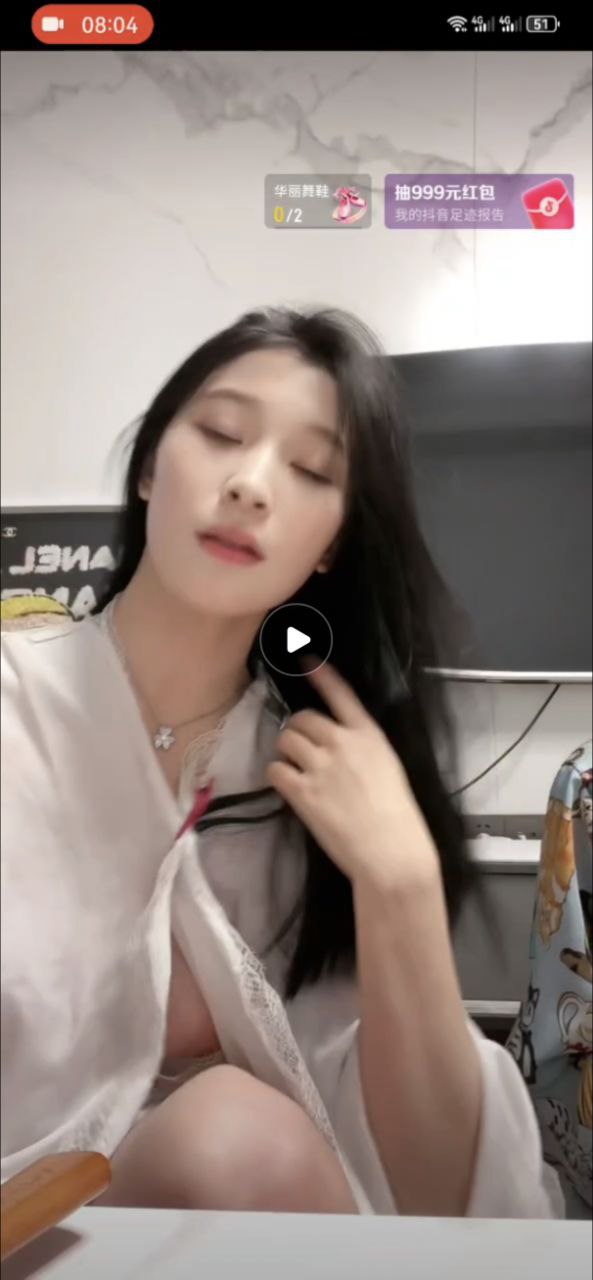 抖音网红鱼子酱直播中宽松睡裙+肩披浴巾,巨乳晃荡粉色乳晕全程可见