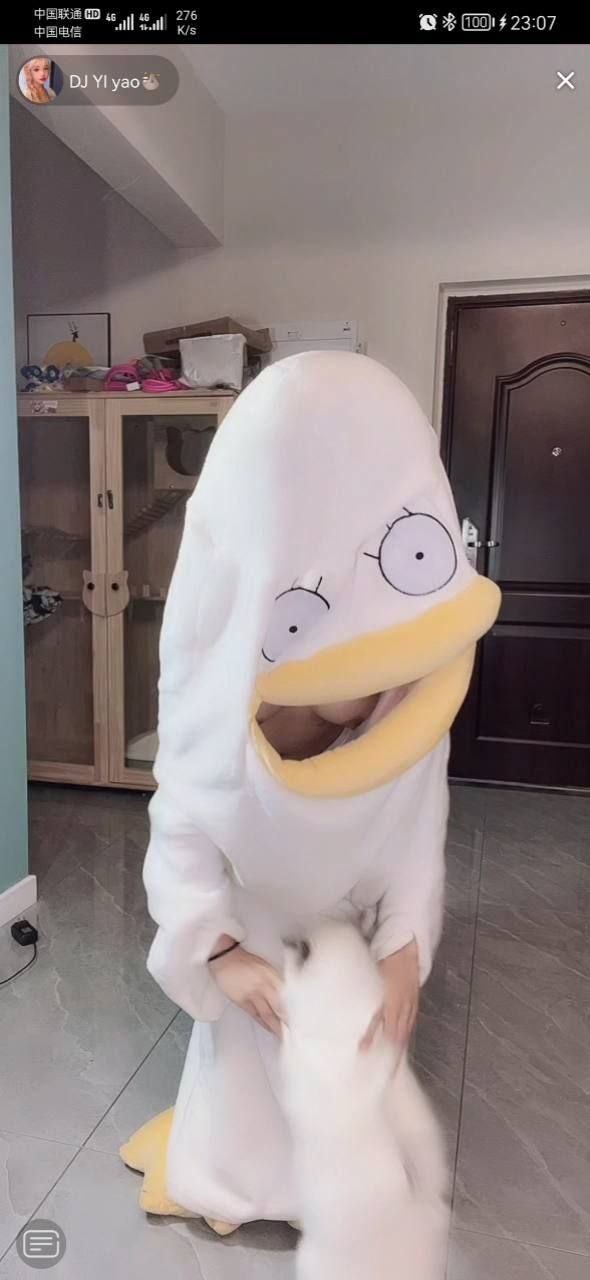 抖音陈一瑶直播真空布偶装!圆大胸部黑葡萄双漏+白色内裤全露,本人浑然不觉