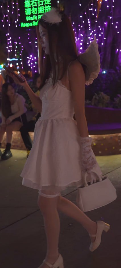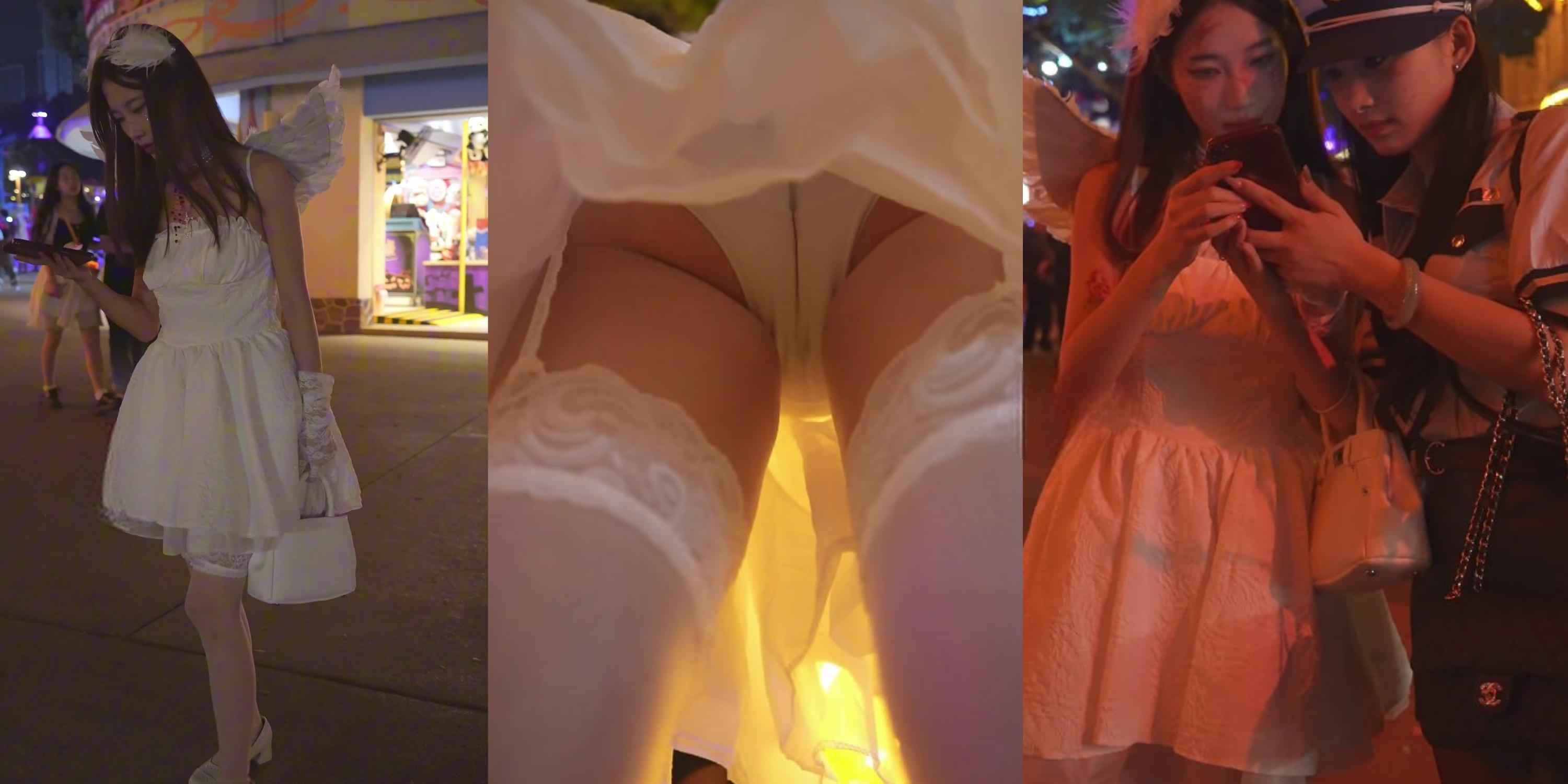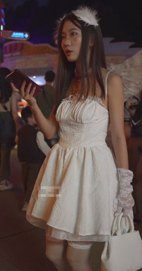 今天长隆捡到宝!天使裙美女白丝吊带弯腰失守,开灯直射湿内裤黏在股沟高清特写
