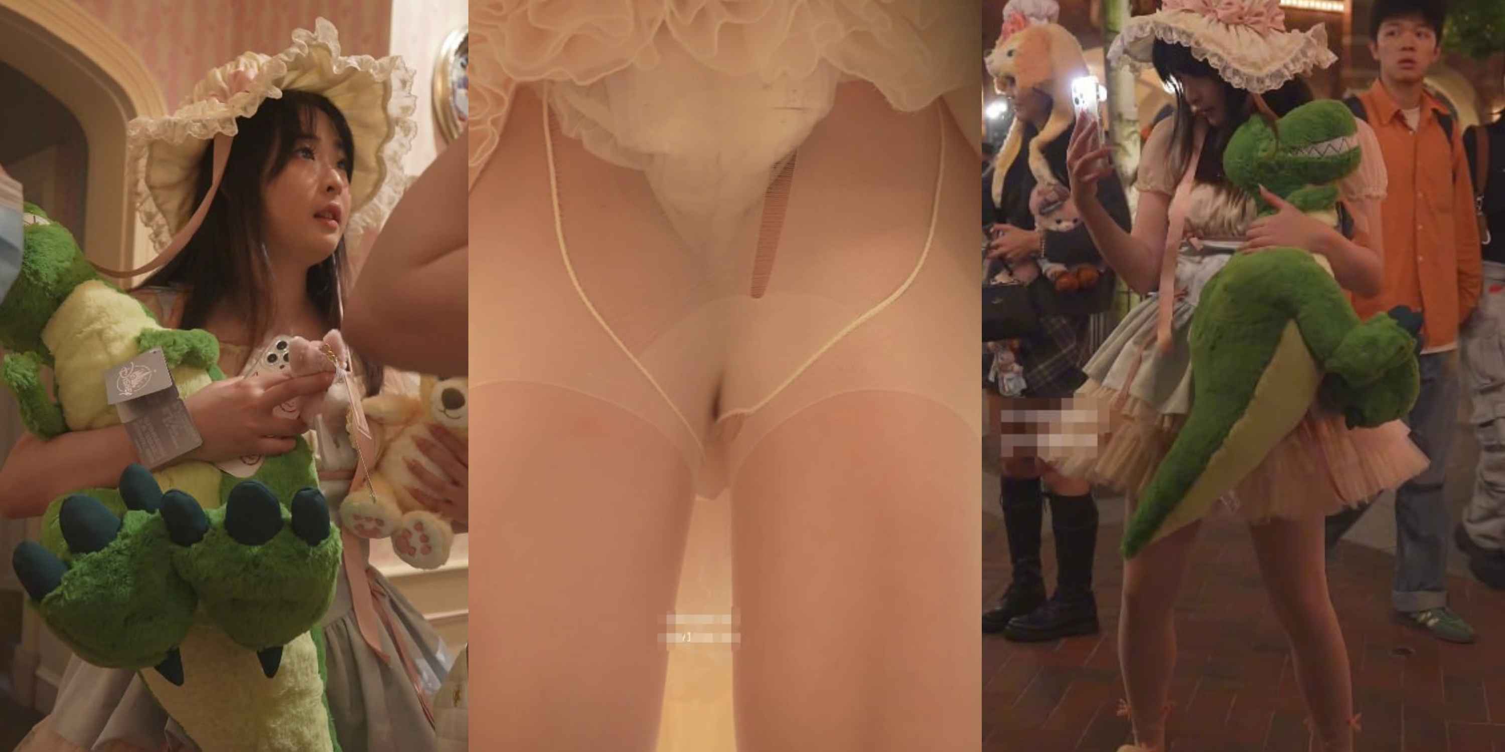 純欲反差拉滿!白丝公主裙萌妹弯腰拍照,镜头贴蕾丝内裤逼缝,萌脸+骚内裤顶不住