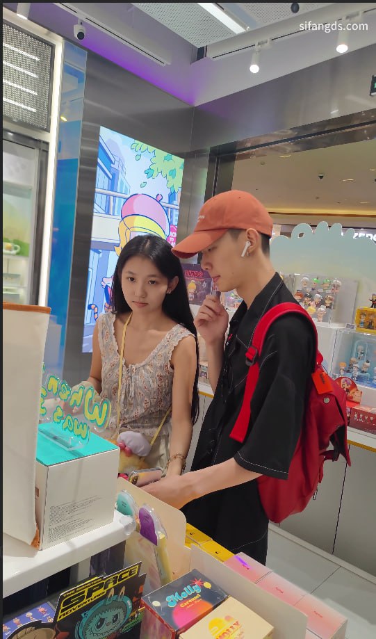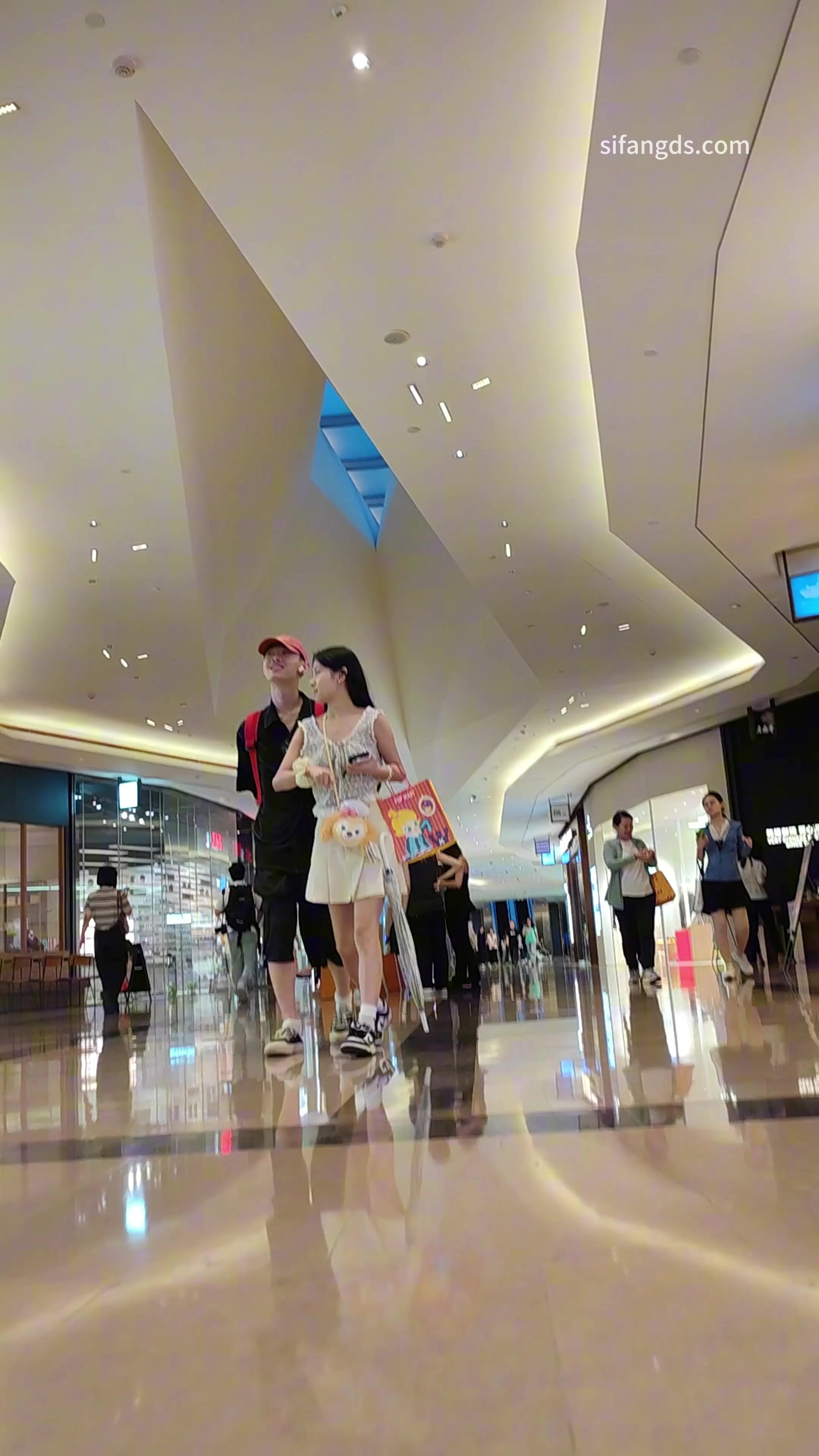 黄色超短裙美女和男友逛街!裙底白色内裤被翘臀勒成细线,腿根春光前后全漏