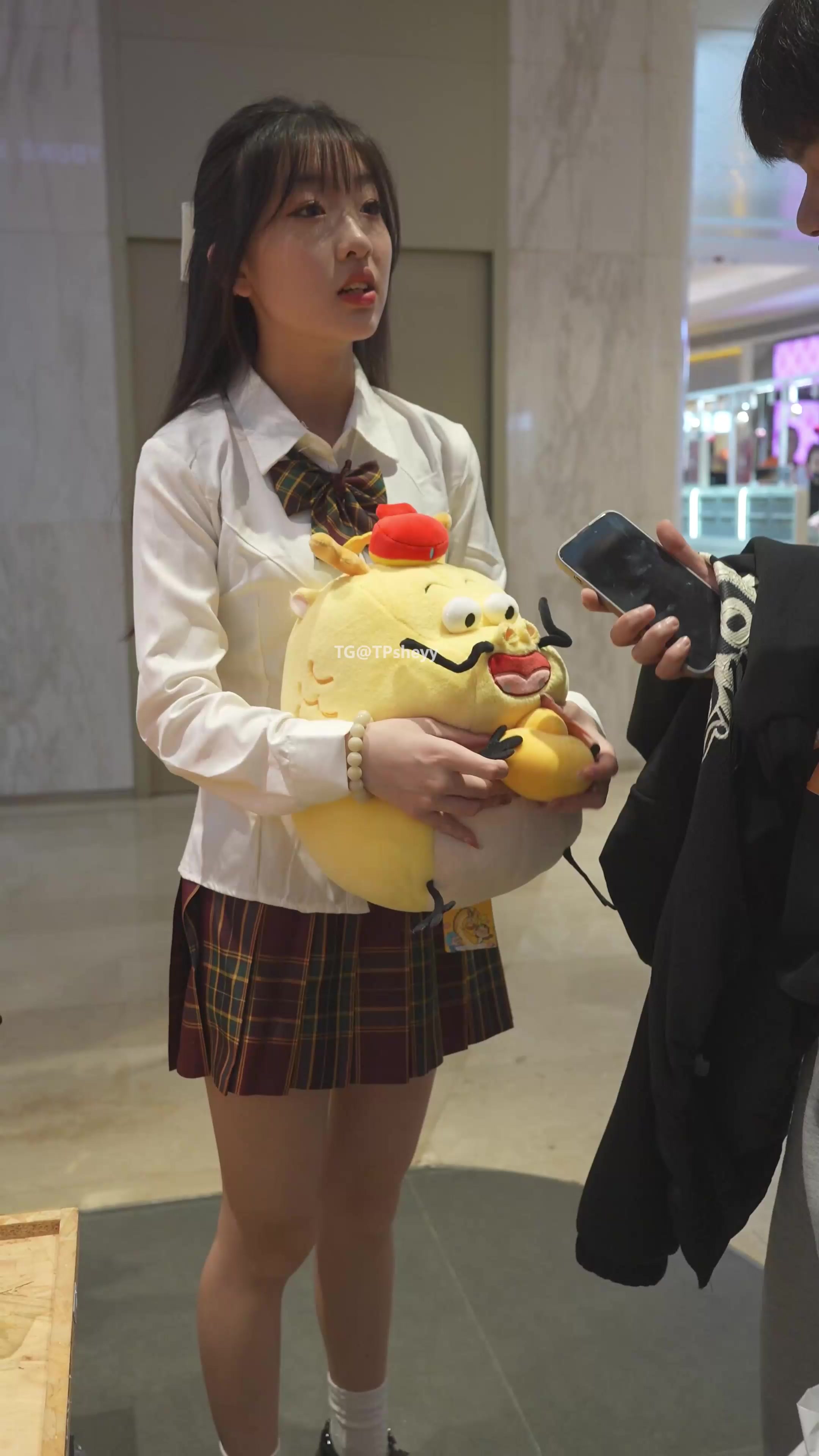 制服JK极品美女逛街半蹲抄底!侧面裙底露黑毛,白色内裤勒臀缝春光炸裂