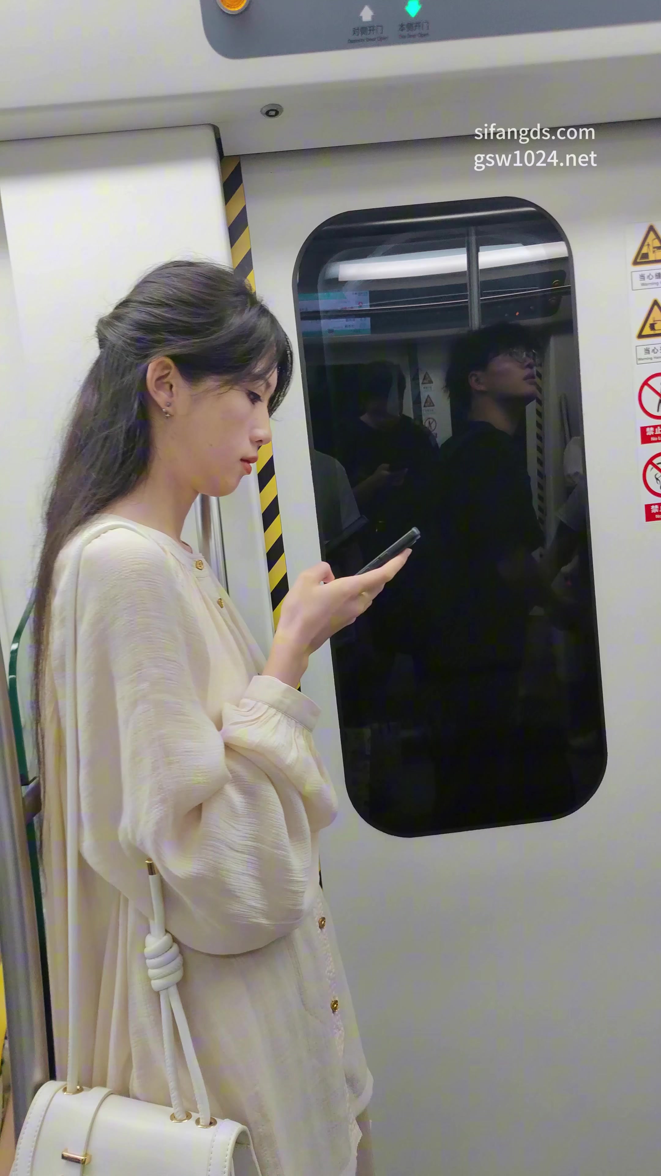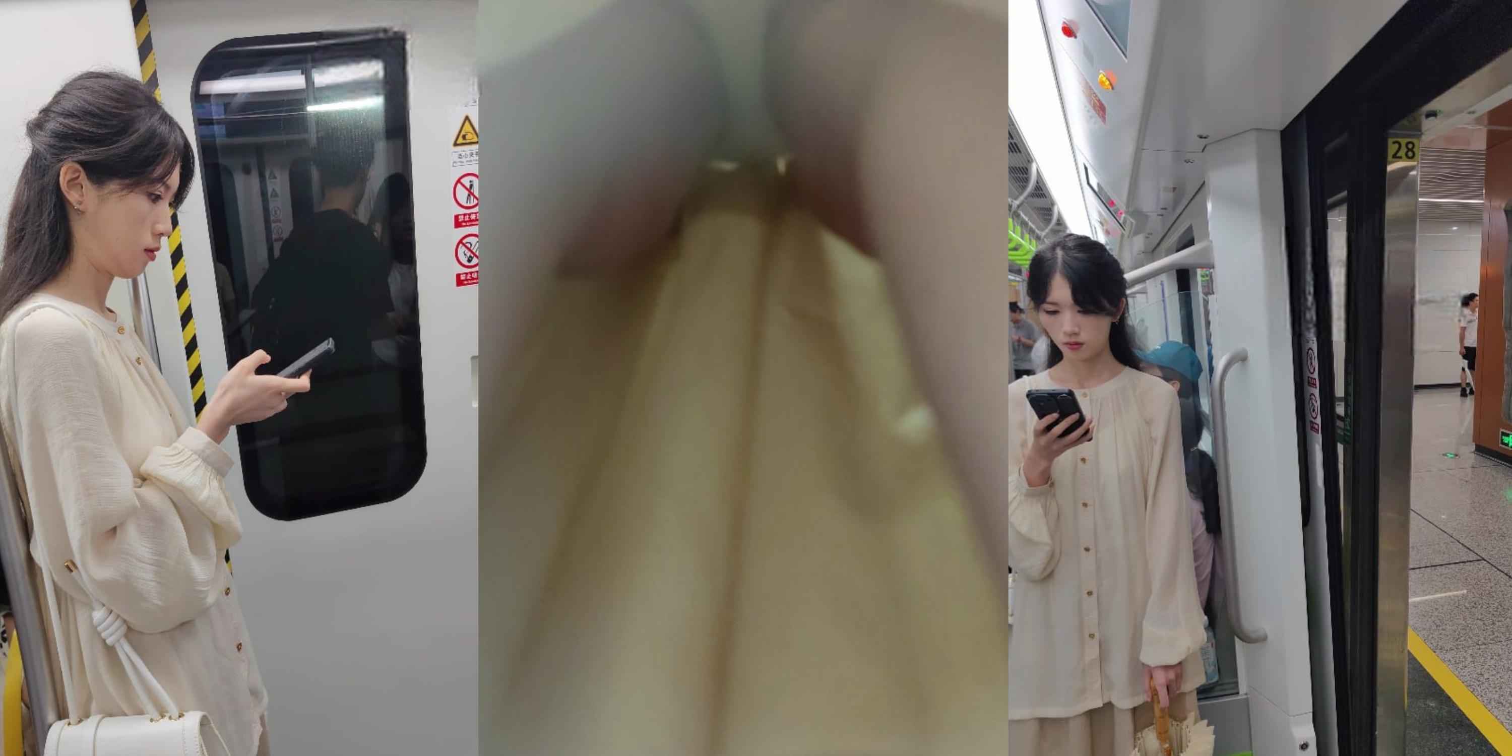 地铁扶梯国风长裙高颜值美女!白色内裤勒进翘臀,腿根春光全露