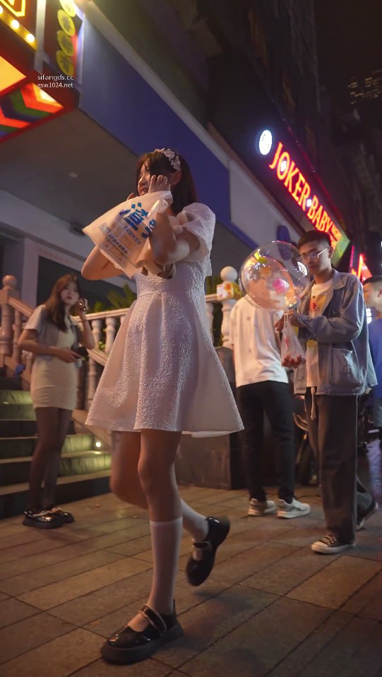 美女和男友约会夜市偷拍!白色蓬蓬裙底白色内裤勒进翘臀缝,腿根私处轮廓全现
