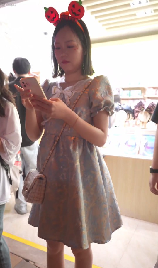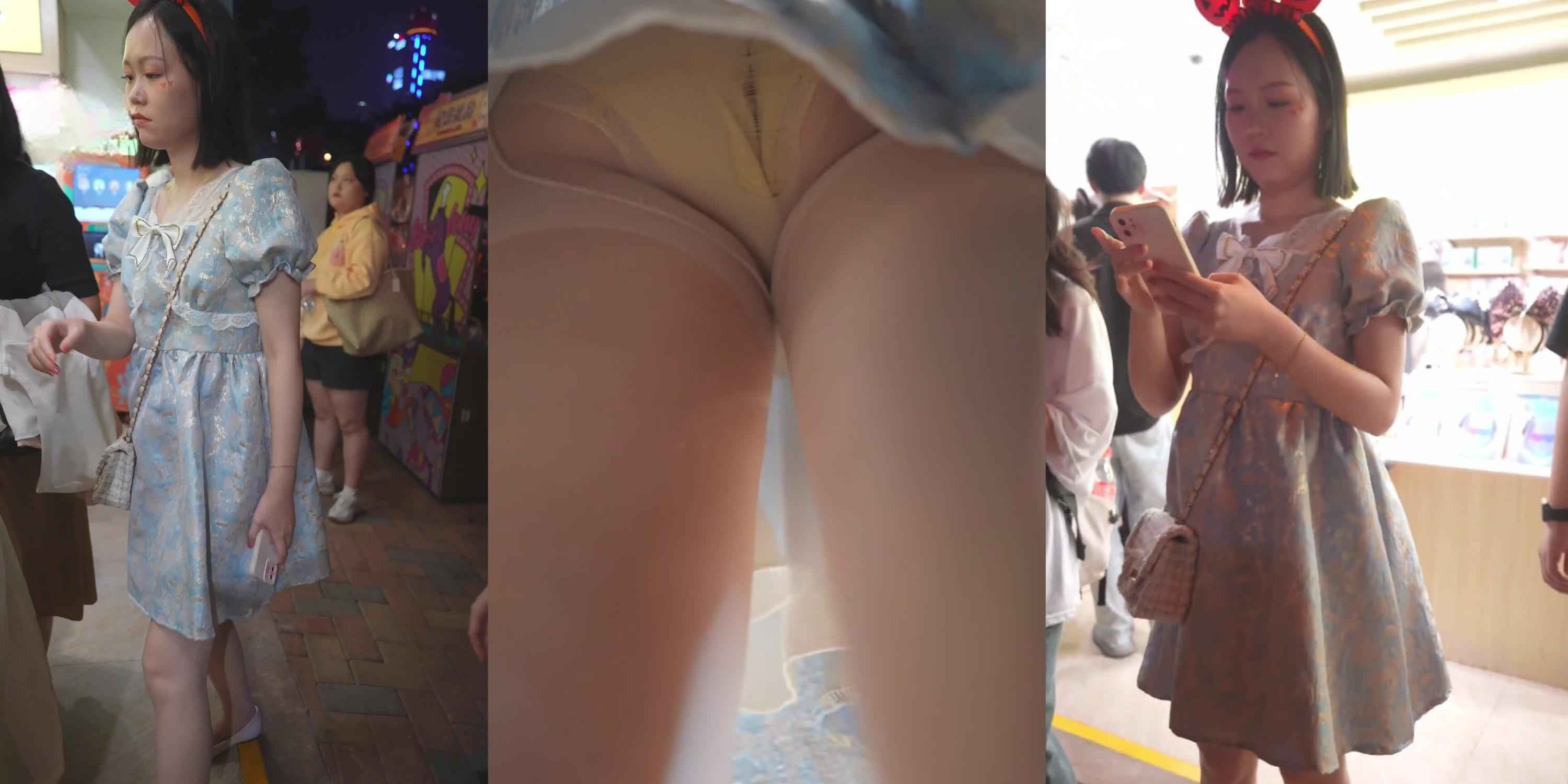 偷拍丝袜黄内小美女!白色蓬蓬裙底黄色蕾丝内裤勒进翘臀,腿根丝袜春光全现