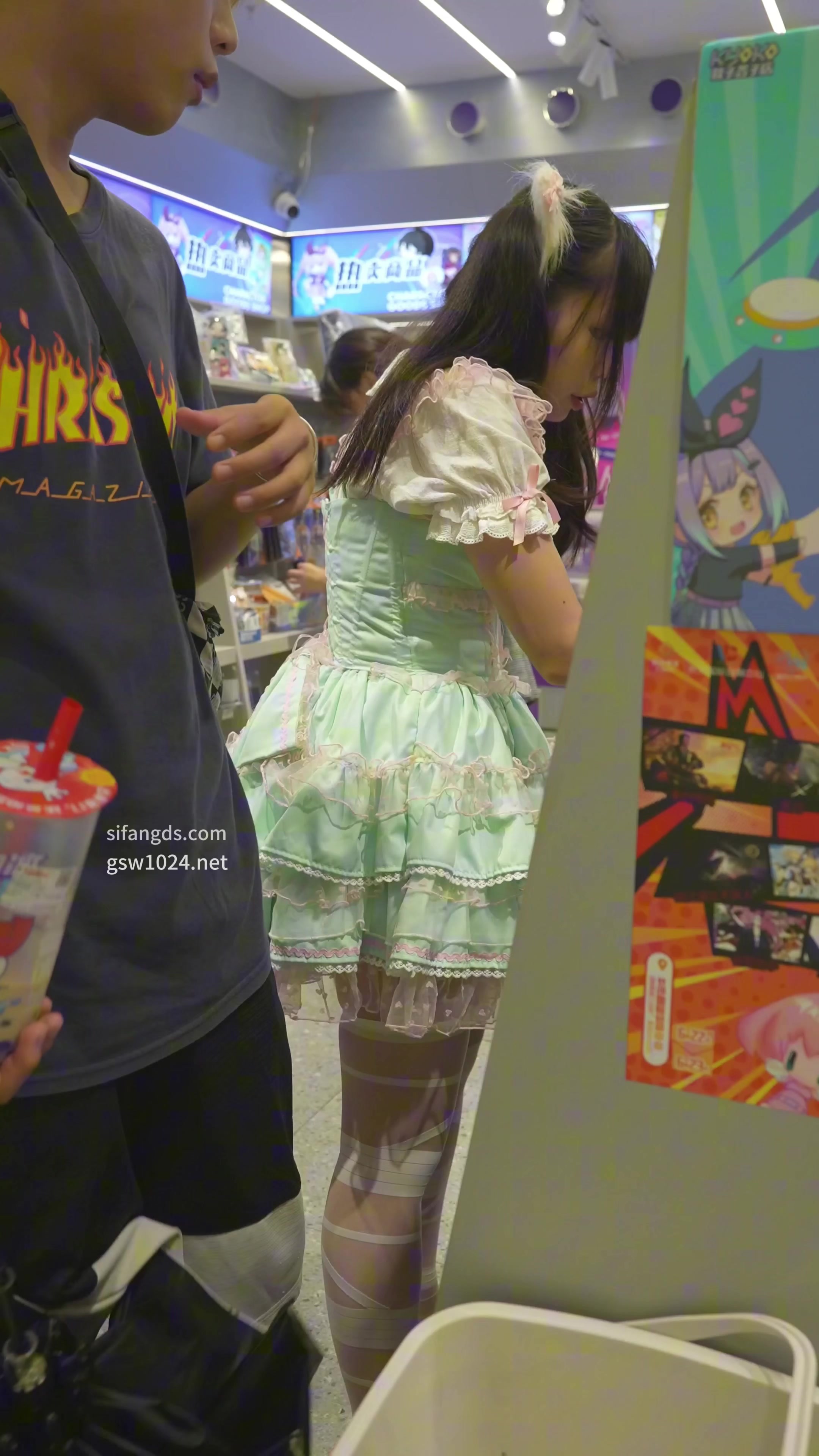 双马尾蕾丝裙小学妹弯腰抄底!蕾丝边内裤全露,看镜头抛媚眼炸裂!