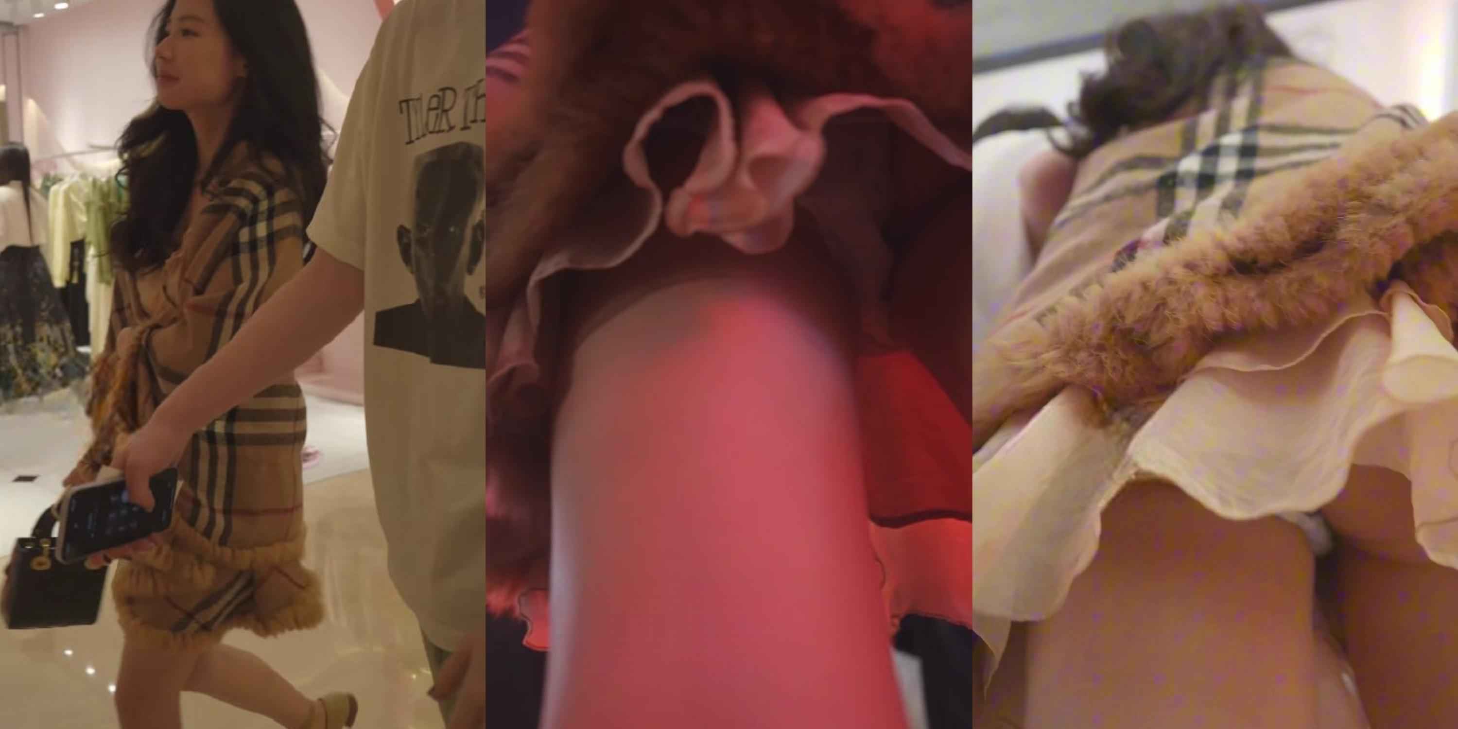 双男约会蕾丝裙美女无缝衔接,微透圆点内前后抄底,淫水渗出圆点透光!