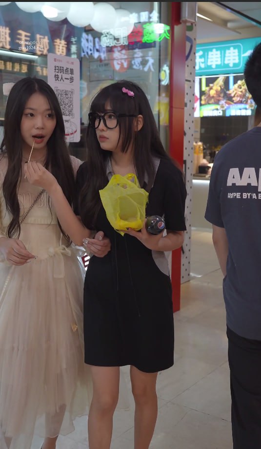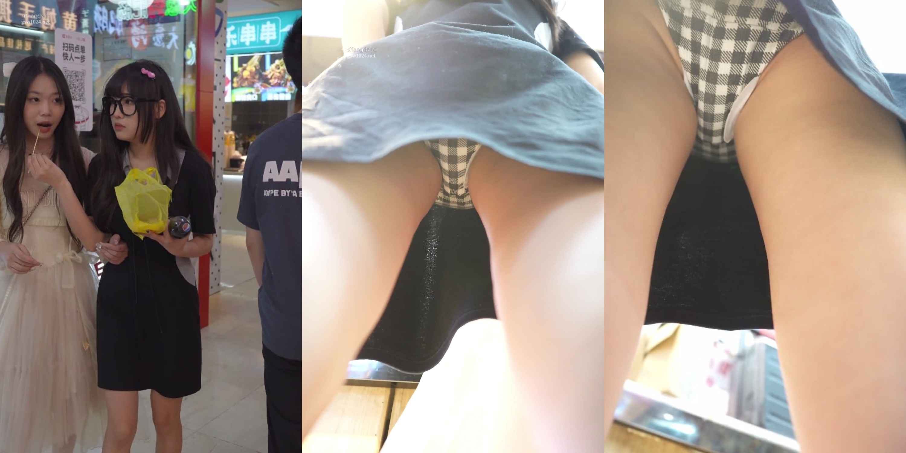黑裙眼镜美女夜市逛街偷拍!格子内裤紧勒翘臀,腿根春光若隐若现超撩人