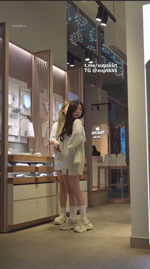 商场白裙甜妹无防备抄底!白色内裤紧贴私处肉缝,裙底春光全漏,谁偷拍谁当场硬了