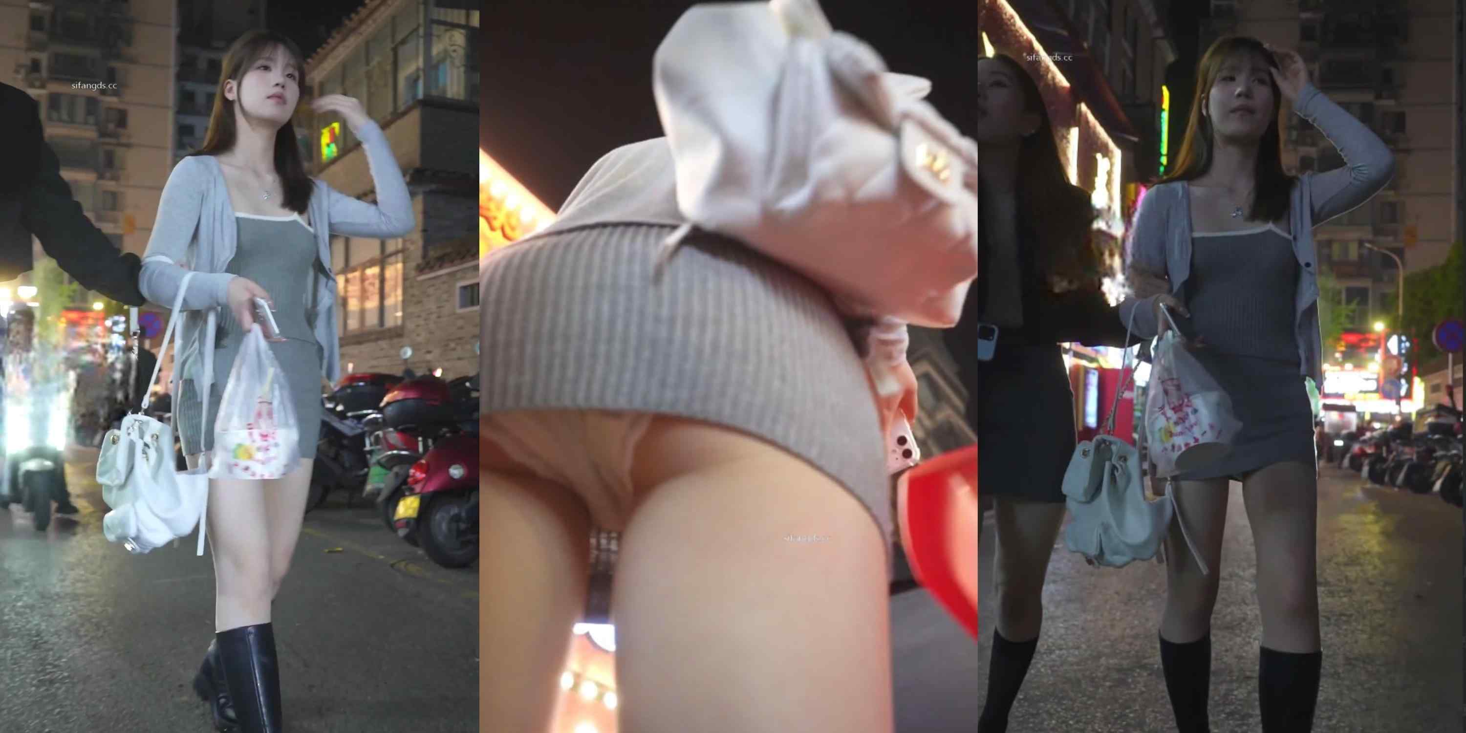 夜街齐逼包臀裙妹子被抄底偷拍!黑色短靴配灰色紧身裙,裙底白色内裤直接全露,臀缝肉痕看得人血脉喷张