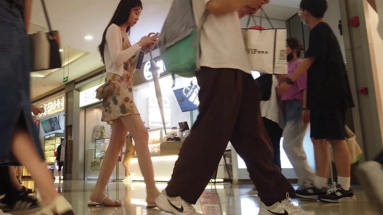 好利来花裙甜妹裙底微透白内全开!浅色印花连衣裙下白色小内裤紧贴翘臀,灯光一打私密轮廓若隐若现超诱惑