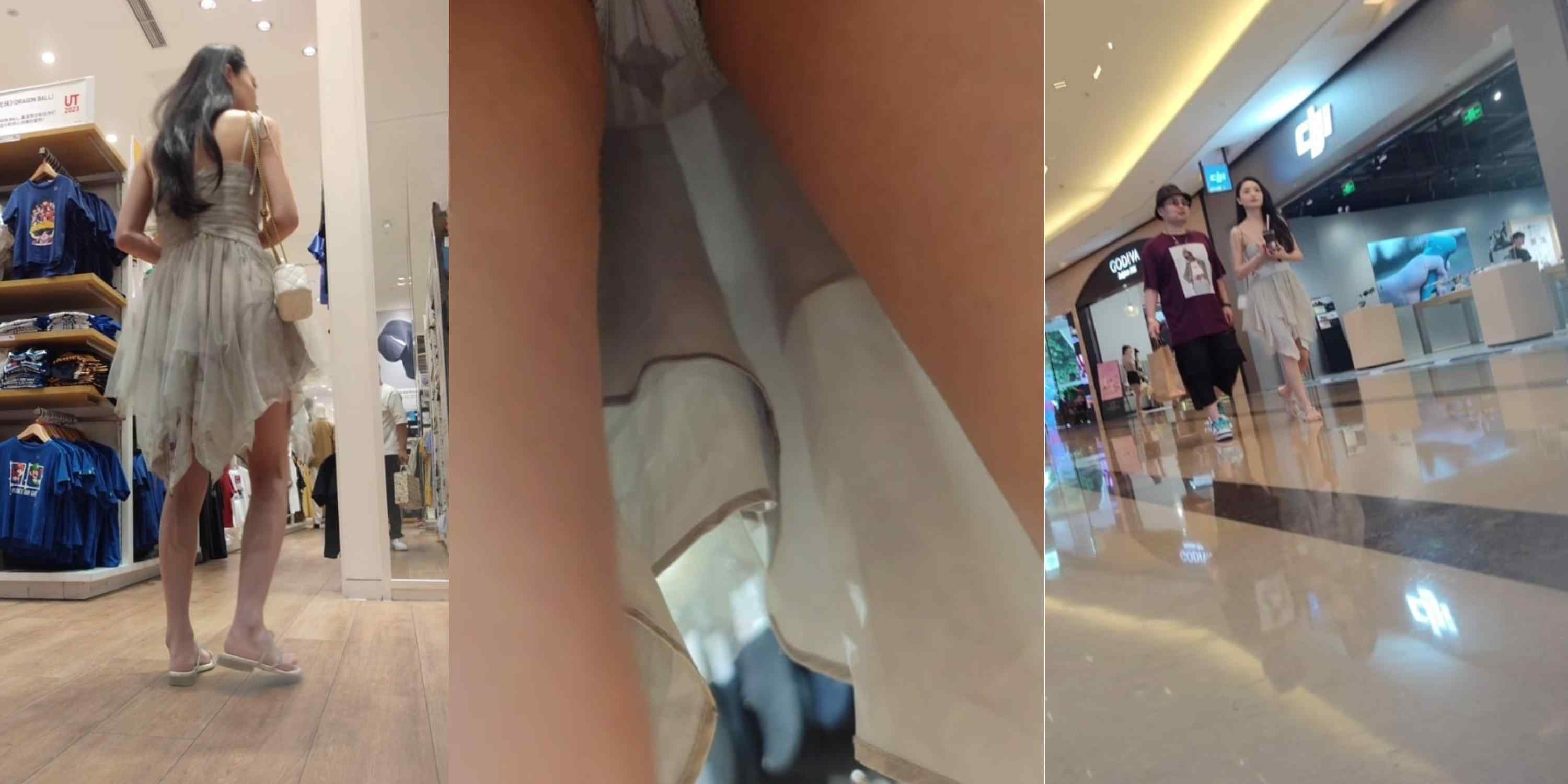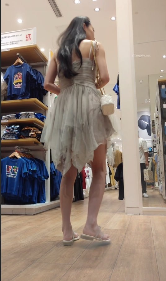 商场灰纱裙骚货美女裙底湿透惊现!灰色窄条内裤紧贴肉缝逼水浸透,薄纱下春光全漏尺度炸裂