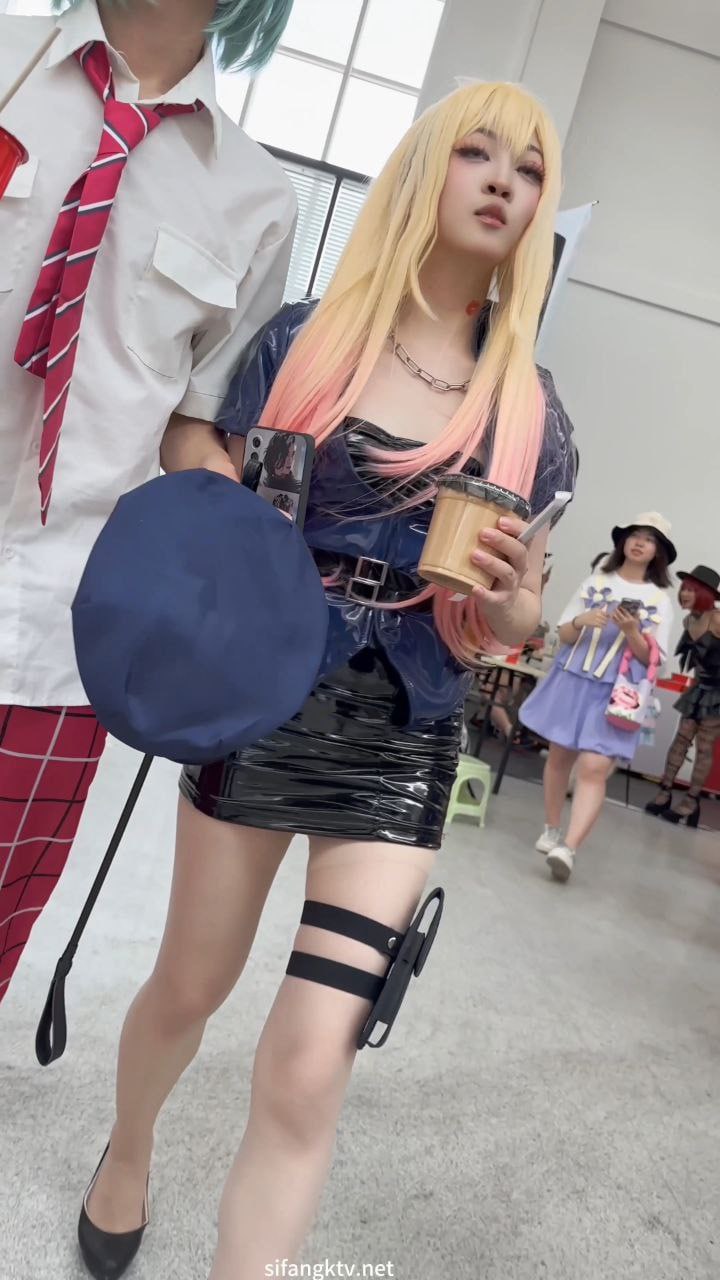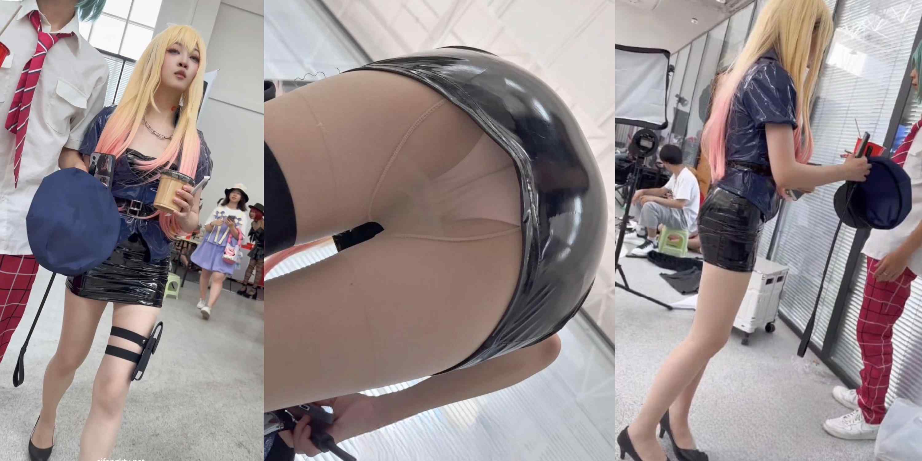 Cosplay现场极品骚货齐B短裙翘臀失守!漆皮超短裙下粉色小内裤紧贴肉缝,前后春光直接全漏,翘起屁股黑丝大腿根炸裂