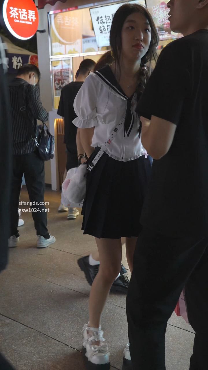 制服JK可爱小姐姐和男友逛街裙底湿透!超短百褶裙下白色内裤一大片水渍,黑丝大腿根春光全泄