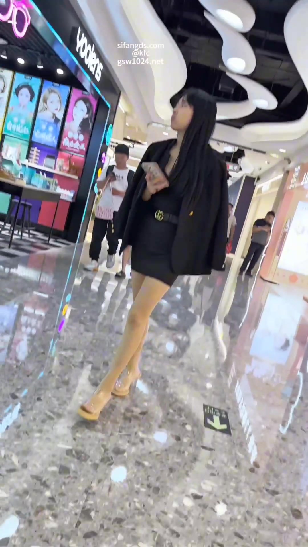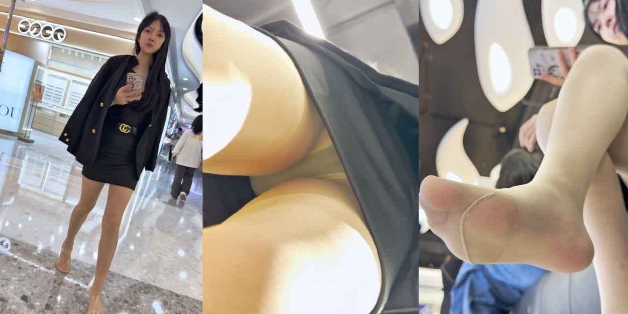 吊带超短裙极品骚货怼脸抄底,透明高跟里臭丝袜脚配骚内全露
