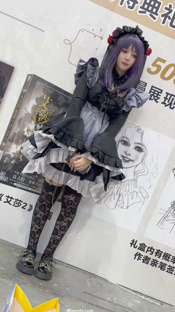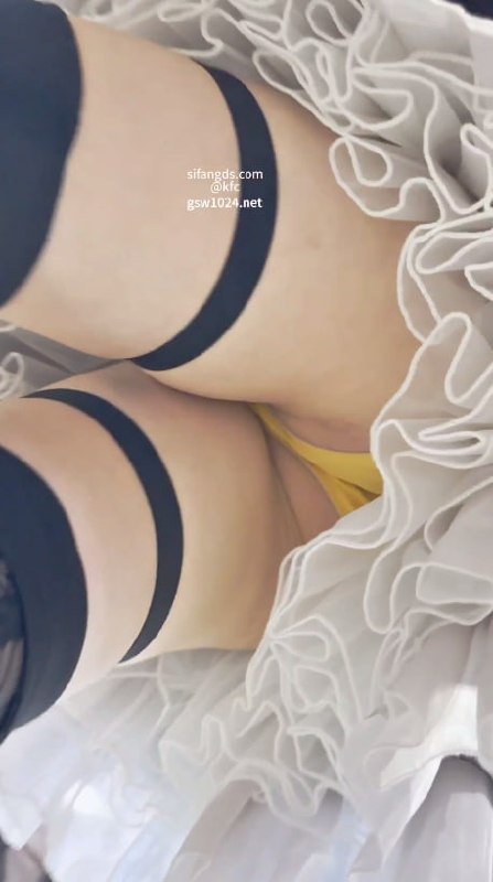 女仆COSER独自逛街拍照,黑丝袜黄色窄内前后全露