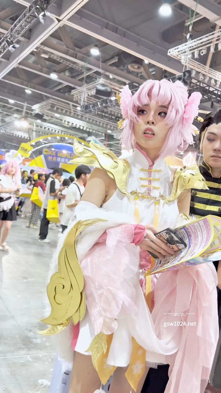 粉裙COSER翘臀拍照,白内裤被抄底全露在层层裙摆下
