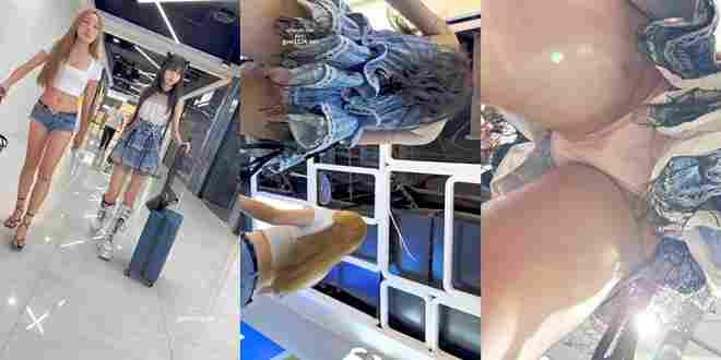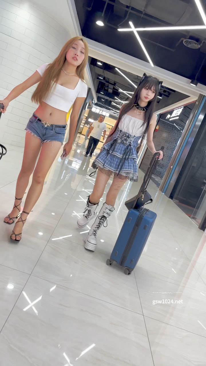 女大开学不去学校去逛街,一个骚一个萌,粉色内裤前后被抄底全露