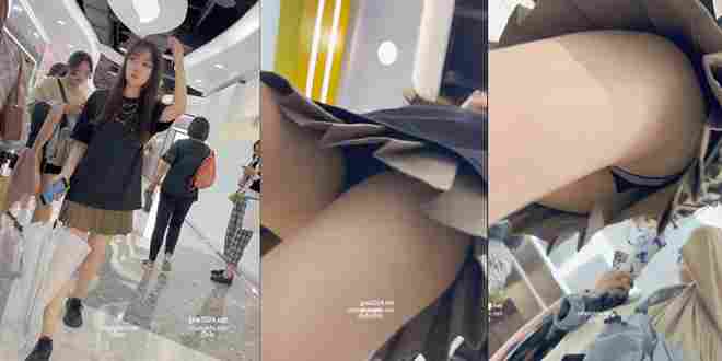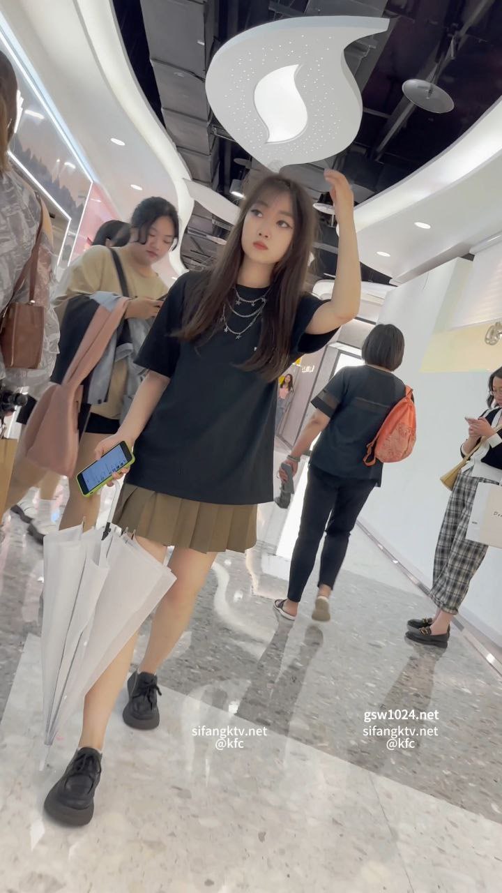 JK短裙学生妹雨天逛街,灰色窄内被大屁股紧紧包裹前后全显