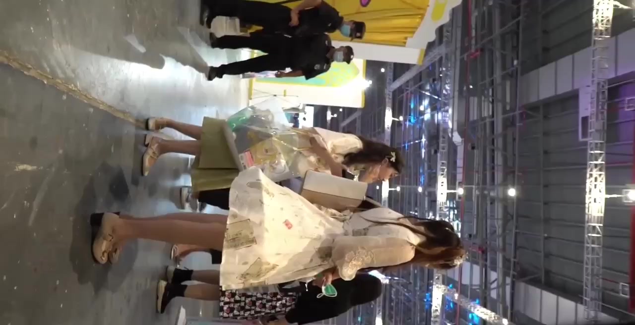 超好看汉服小姐姐逛展会,裙摆掀起瞬间灰色内裤被低角度全抄底