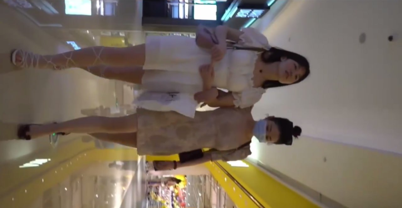 短裙气质美女逛商场,裙底白色蕾丝内裤被低角度抄底全露