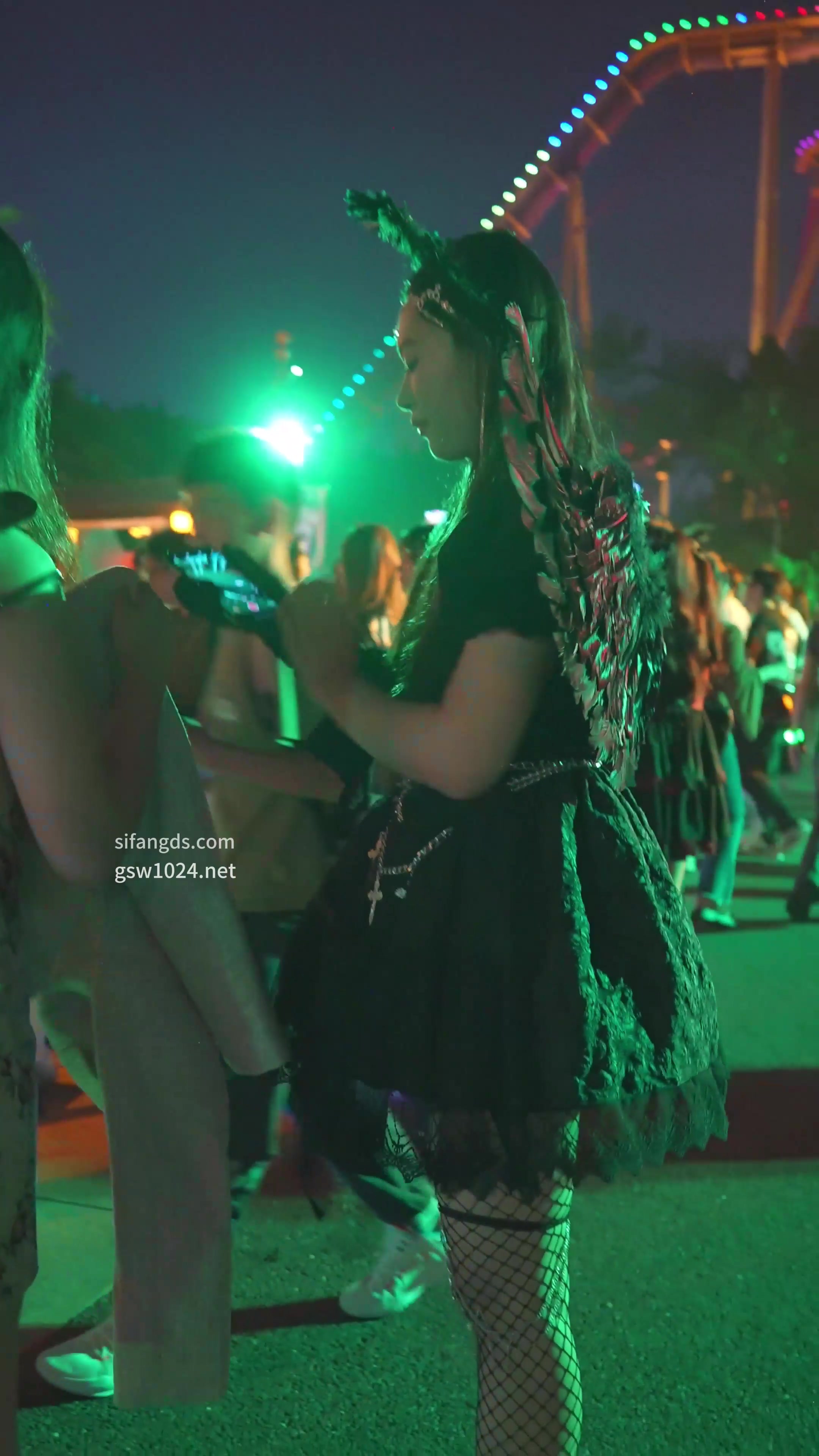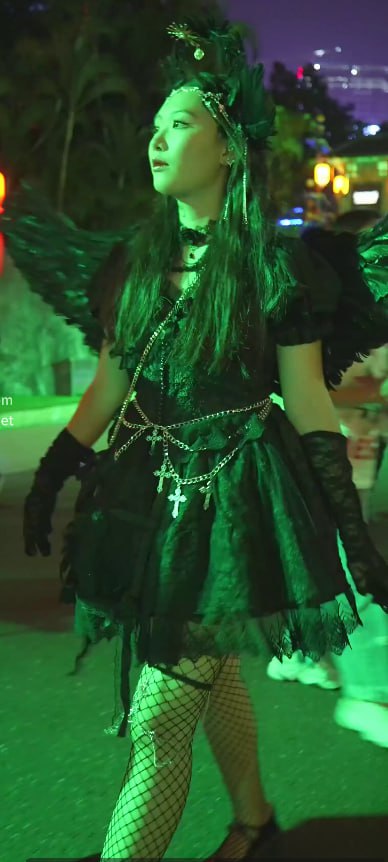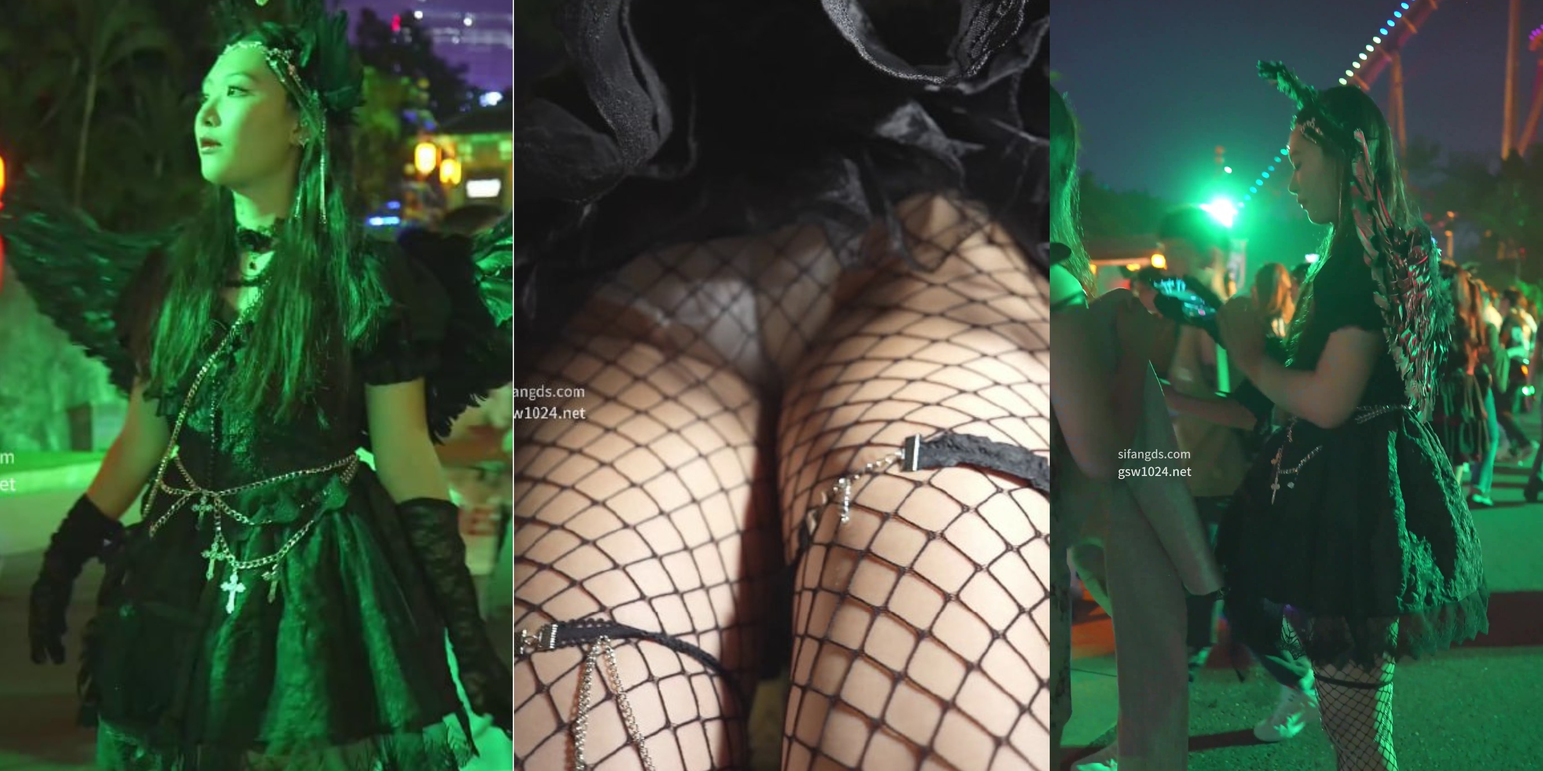 闪光灯直射天使裙下,黑渔网+无痕内裤逼缝全暴露