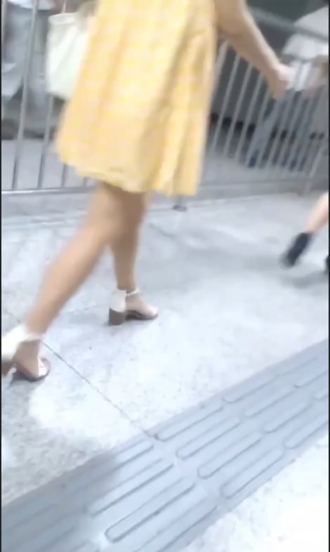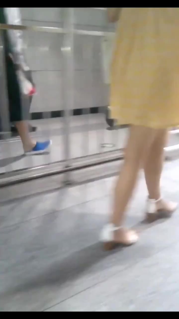 地铁通道黄色连衣裙小姐姐,无内真空阴毛茂盛黑鲍鱼被低角度抄底