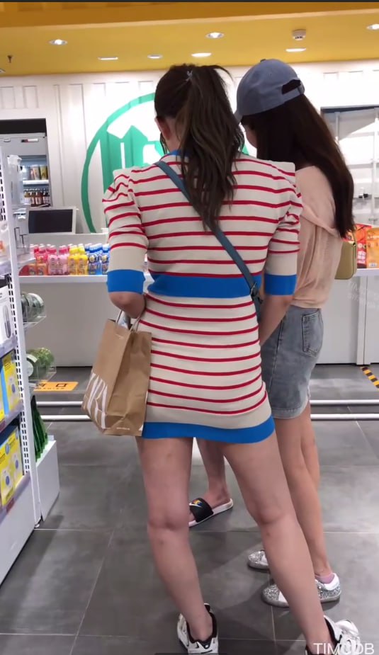 前后抄底条纹少妇,黑森林阴毛浓密从裙底溢出全被拍光