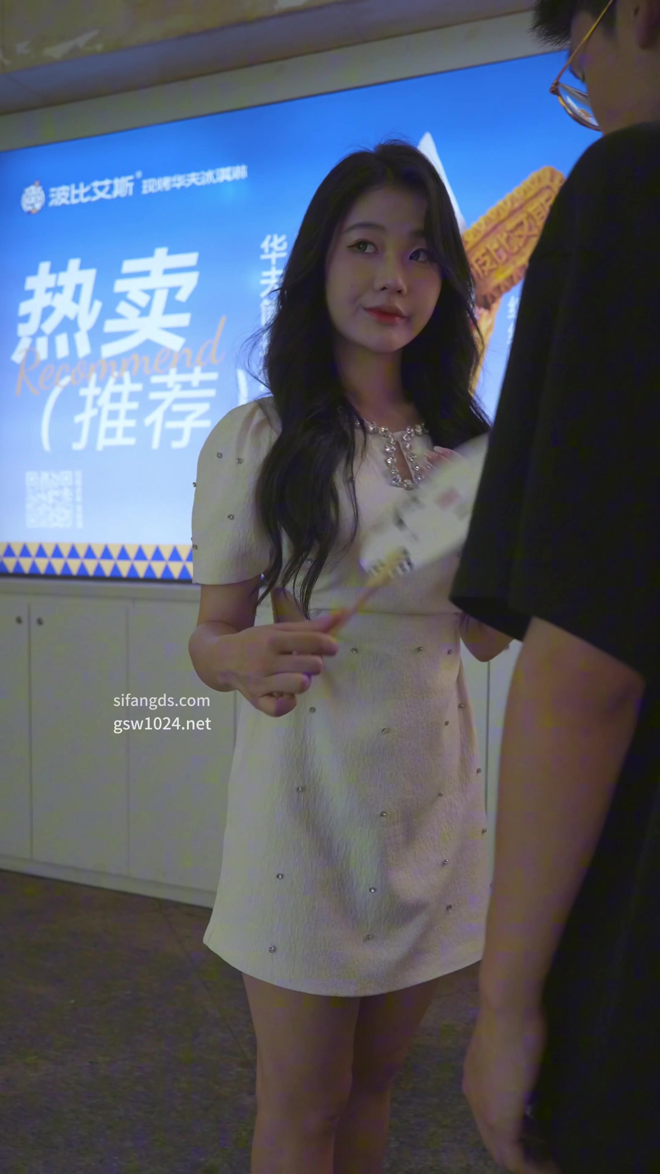 男友就在旁边!气质白裙高跟美女窄内裤前后抄底下流爆