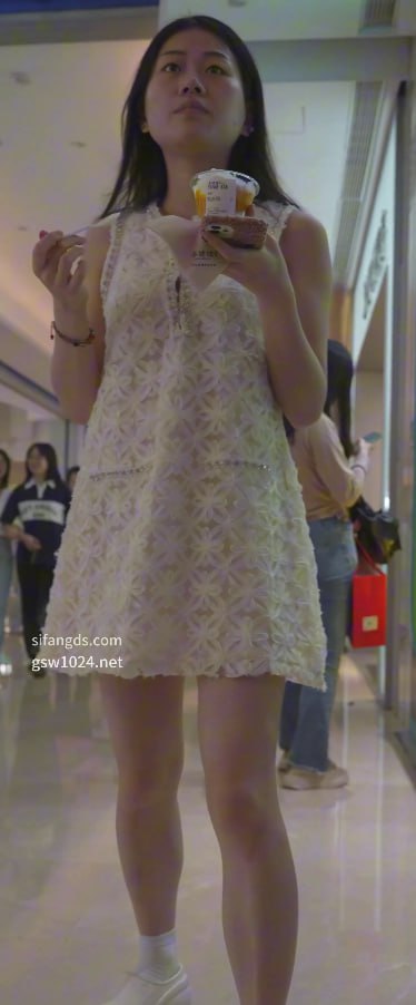 通透裙小姐姐逛街被透心凉!CK内衣内裤全透,黑逼肥臀直接抄底走光