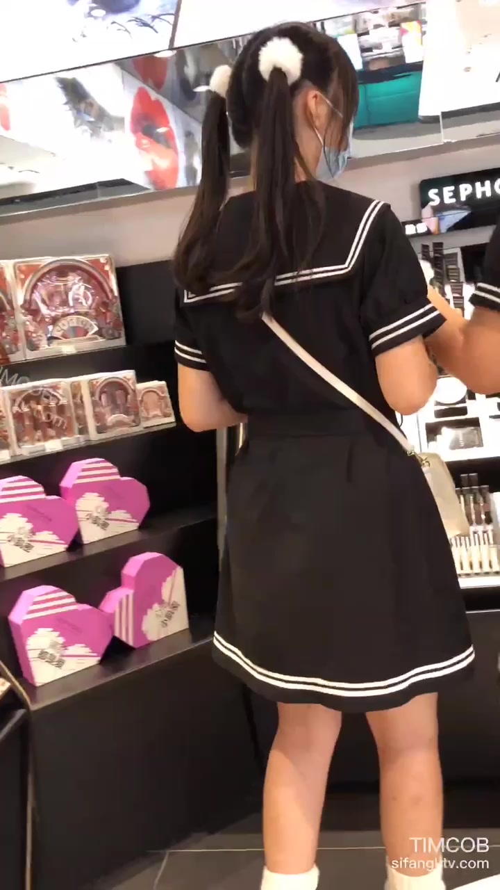 可爱双马尾JK制服抄底偷拍!粉色内裤紧勒翘臀缝,腿根春光全露轮廓鼓起