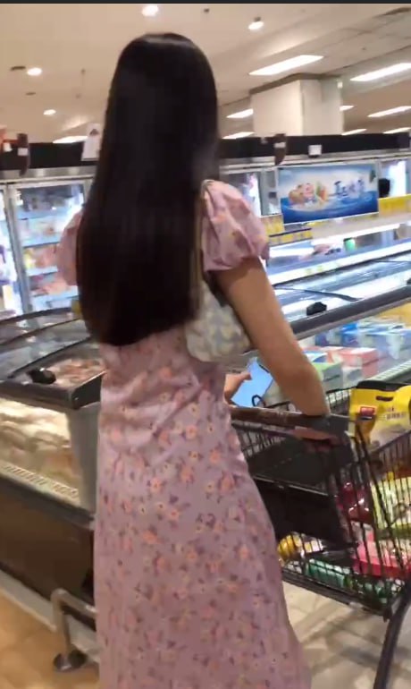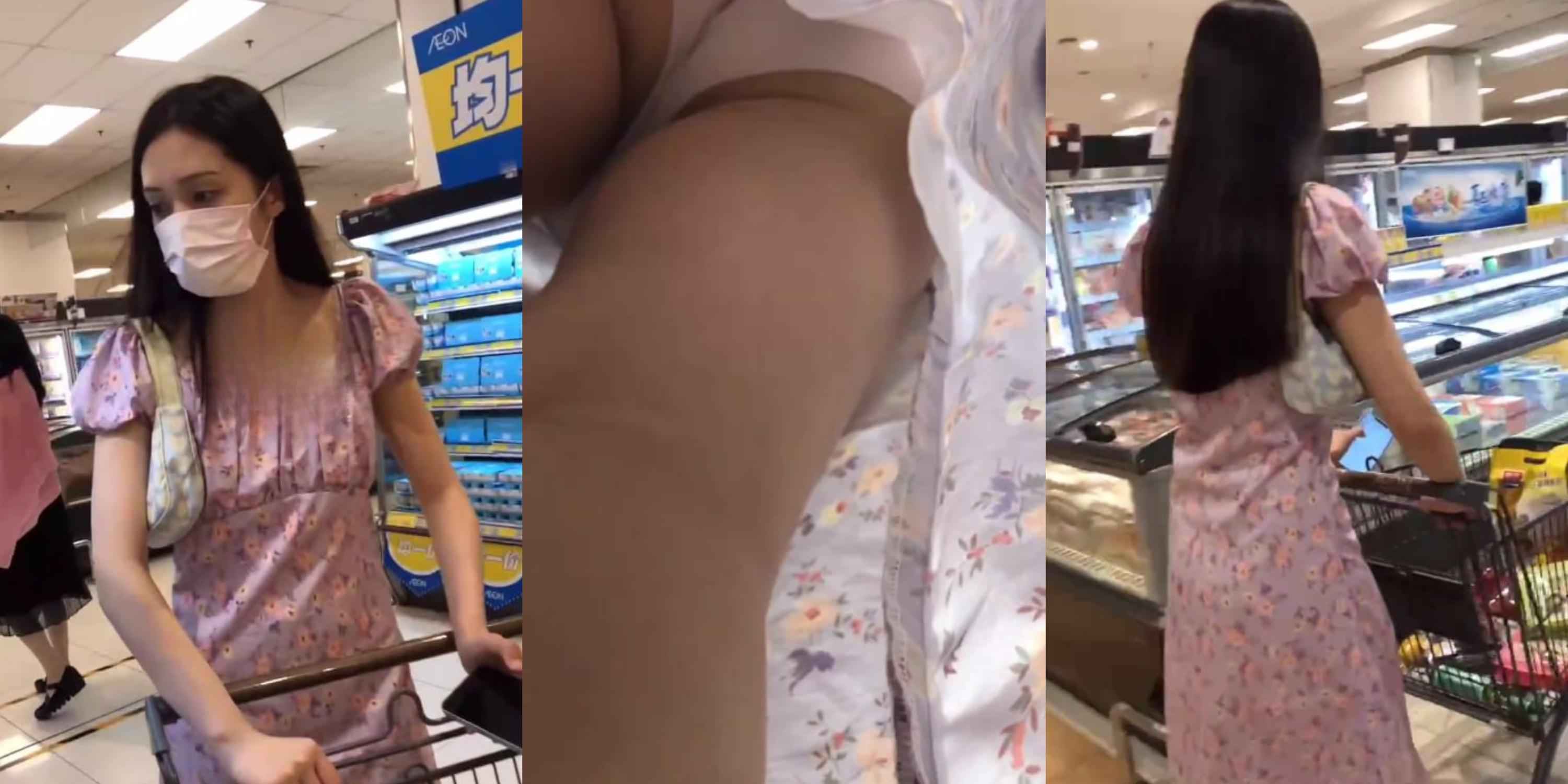 超市粉裙长腿美女抄底偷拍!白色蕾丝内裤勒进翘臀缝,腿根肉浪翻滚春光全漏