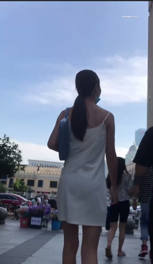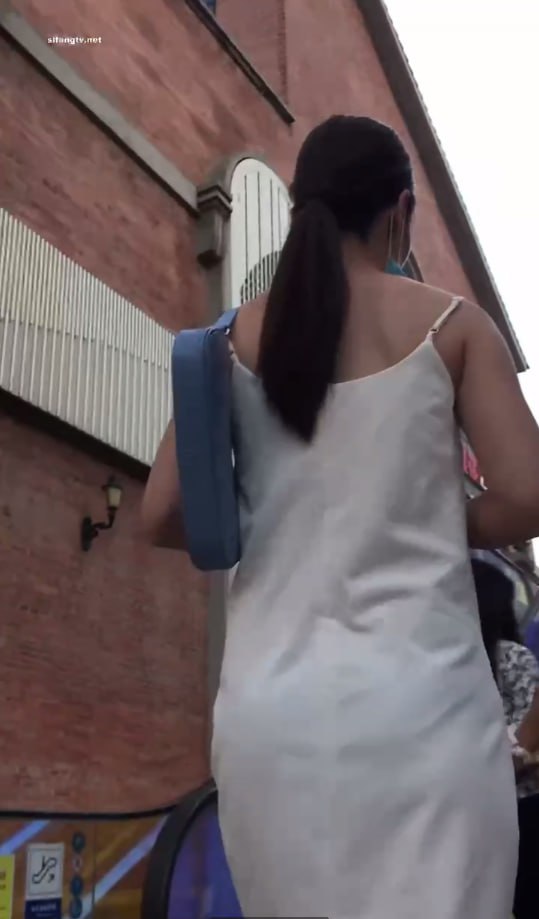 街头白色吊带裙美女抄底偷拍!黑色丁字裤细带死卡翘臀缝,腿根肉浪翻滚春光全漏
