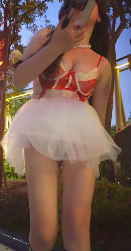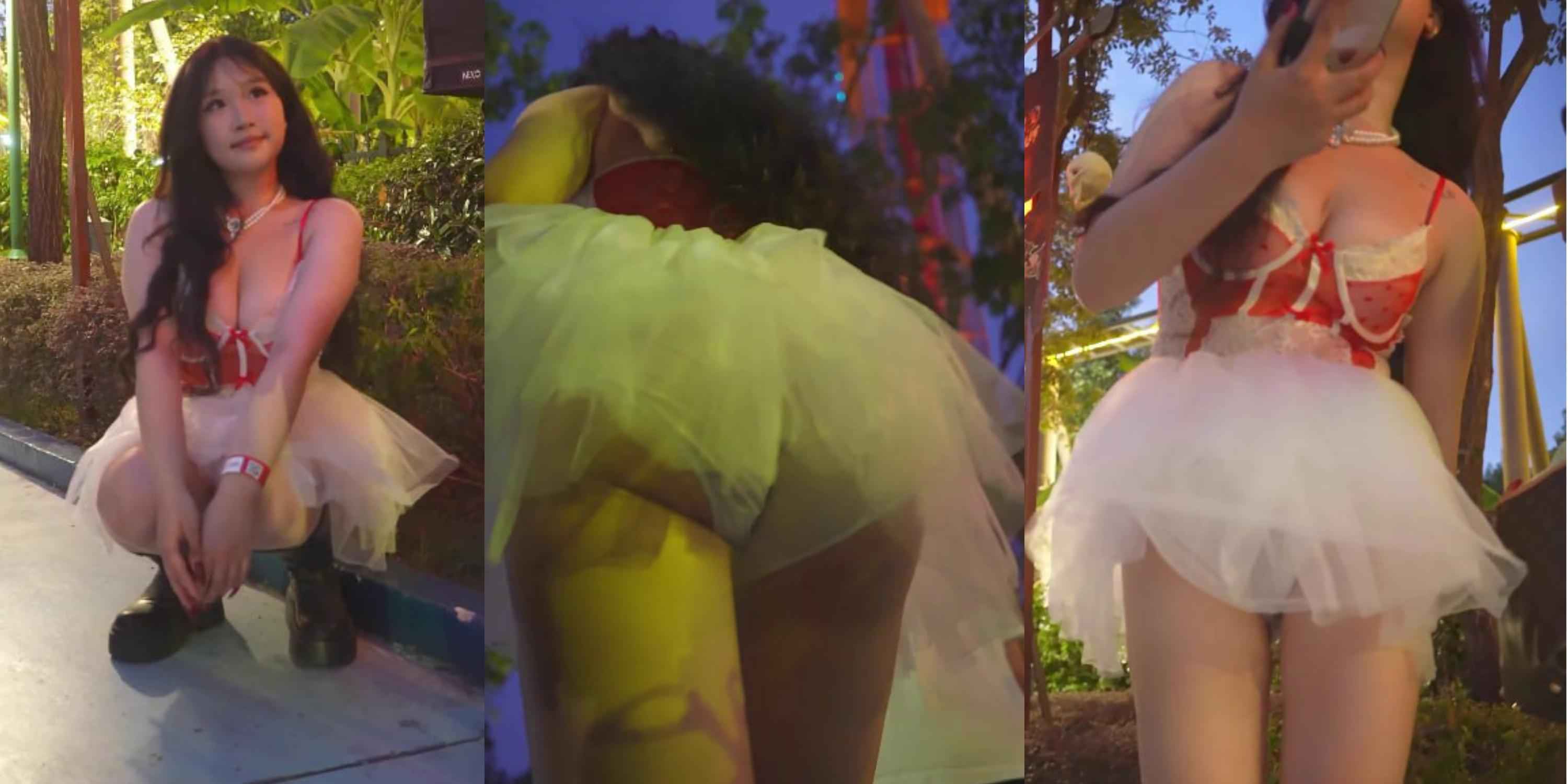 长隆蕾丝裙大奶拍照!内裤全露抄底阴毛隐现