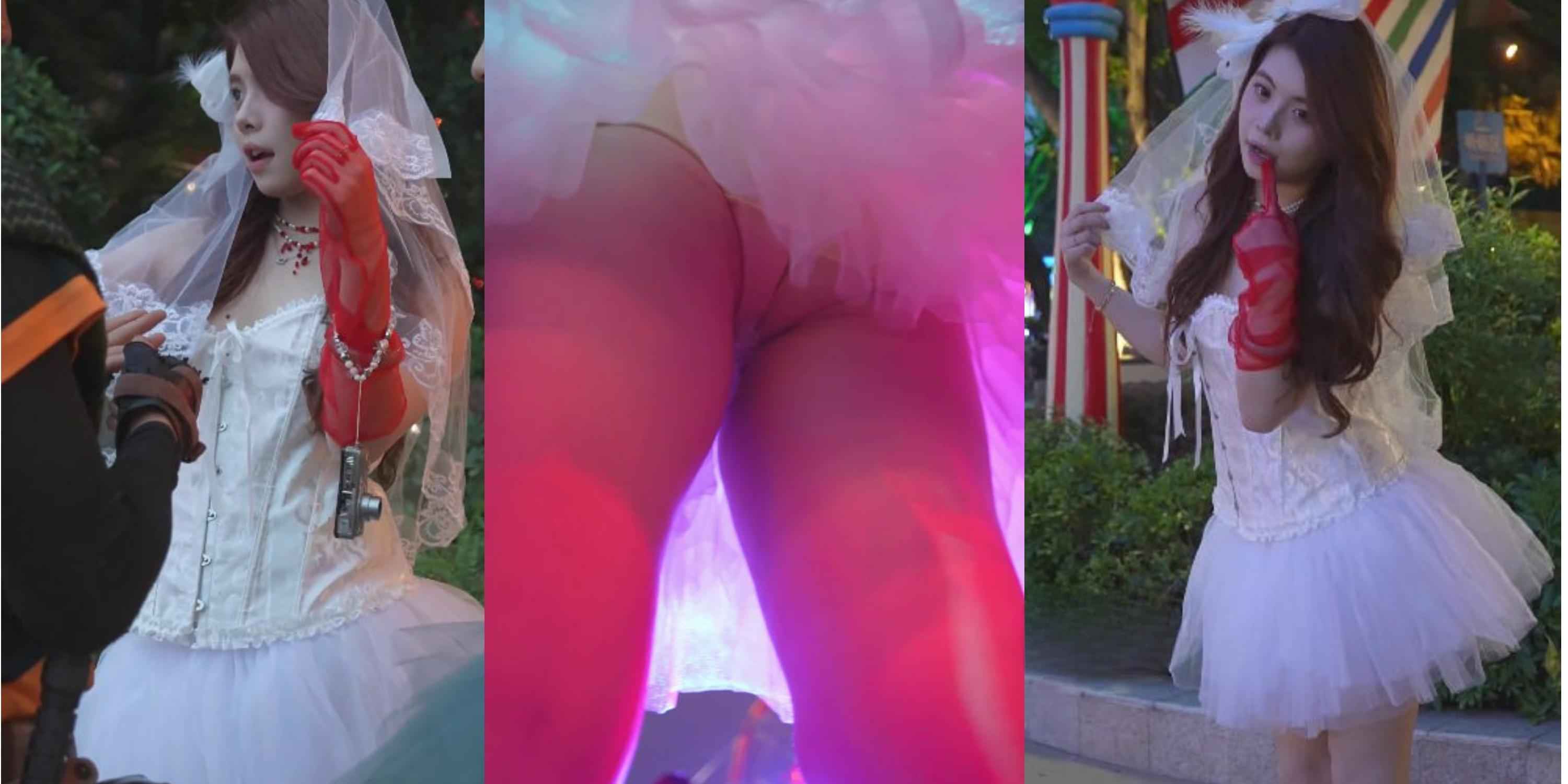 绝美婚纱妹看live,抄底一照浅黄内裤湿透了
