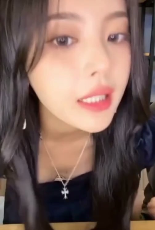 杨超越蓝格子低胸喝水!锁骨+红唇视觉炸裂