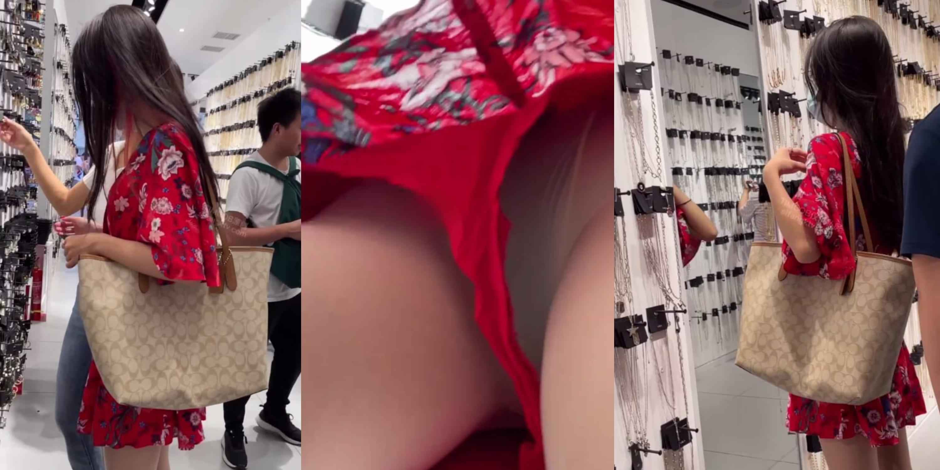 商场红碎花裙长腿美女抄底偷拍!肉丝包裹黑色内裤勒进翘臀缝,腿根肉浪翻滚春光直击