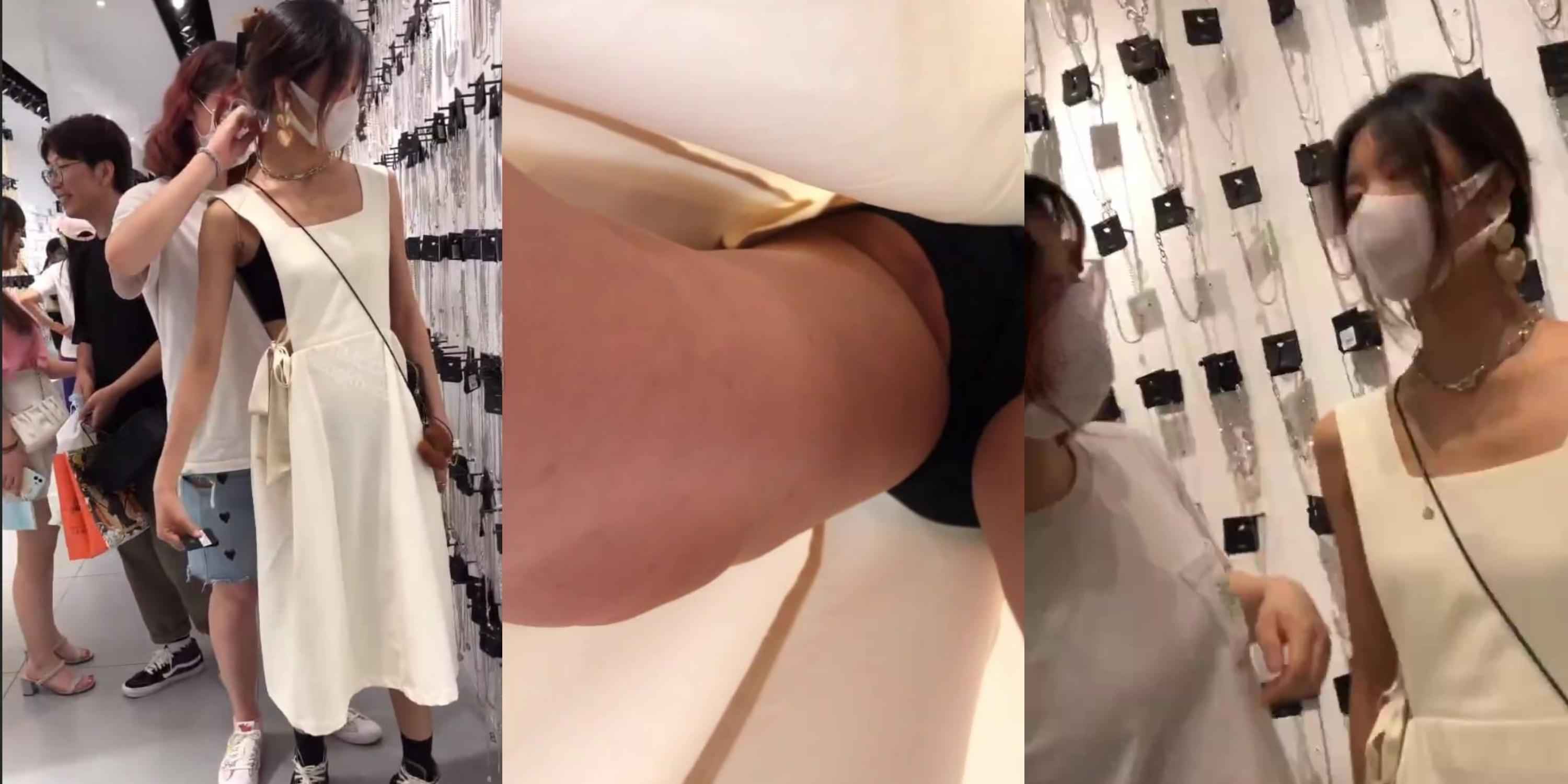 首饰店超气质美女抄底偷拍!黑色内裤紧勒翘臀,阴唇轮廓鼓起清晰