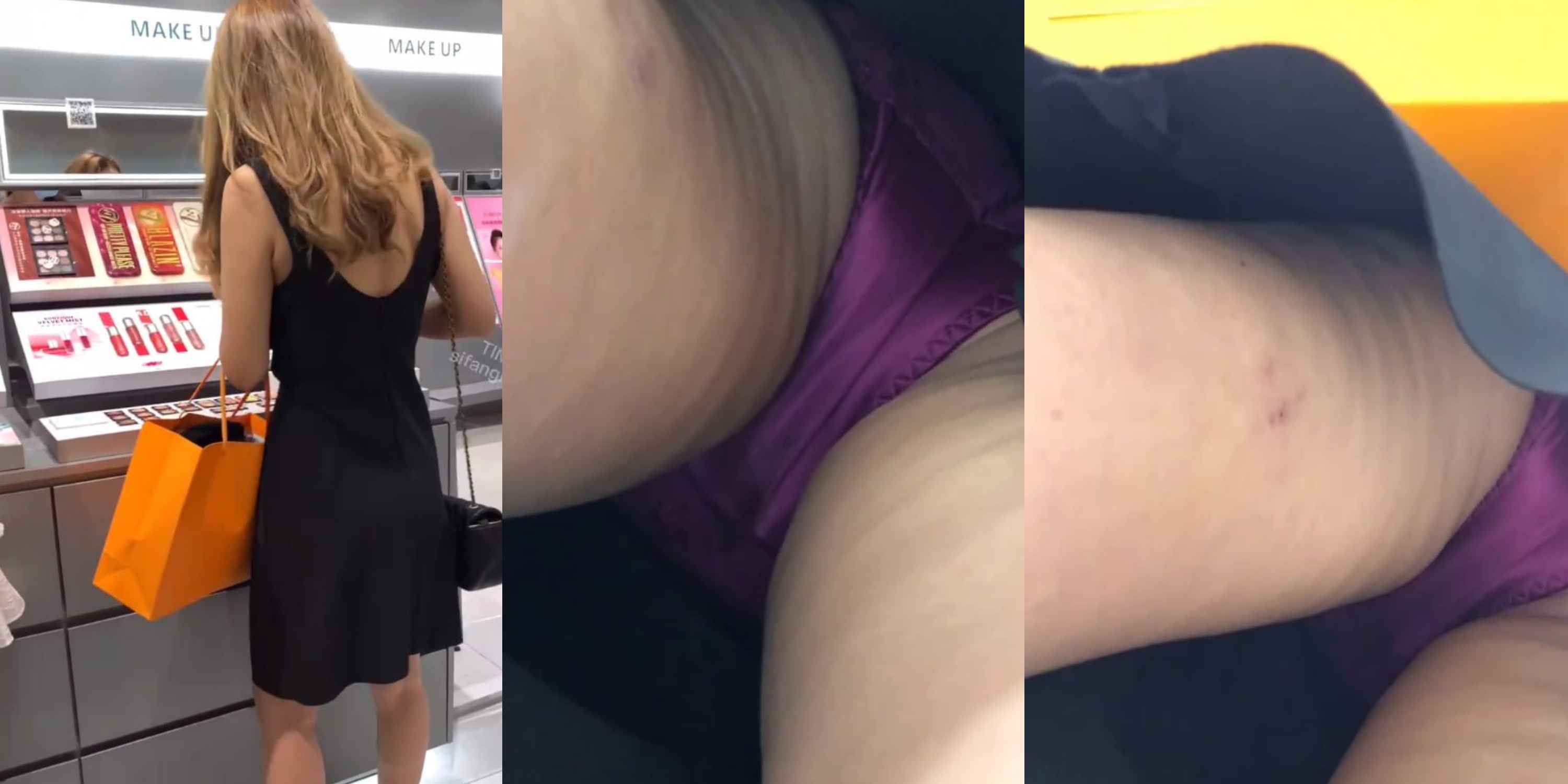 商场黑裙少妇抄底偷拍!紫色内裤紧勒翘臀,私处轮廓鼓起极有韵味