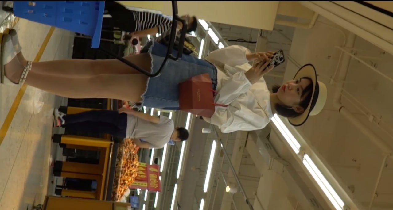 超市厚丝小姐姐抄底偷拍!白色内裤细带卡进臀缝,臀肉挤出诱人弧度