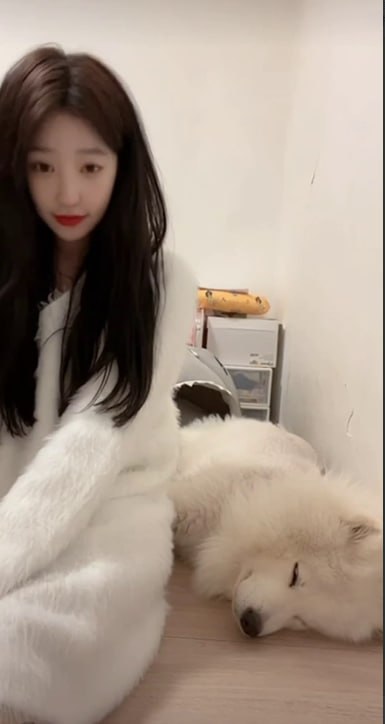 地板上的软萌双杀 少女和萨摩耶一起梦游仙境