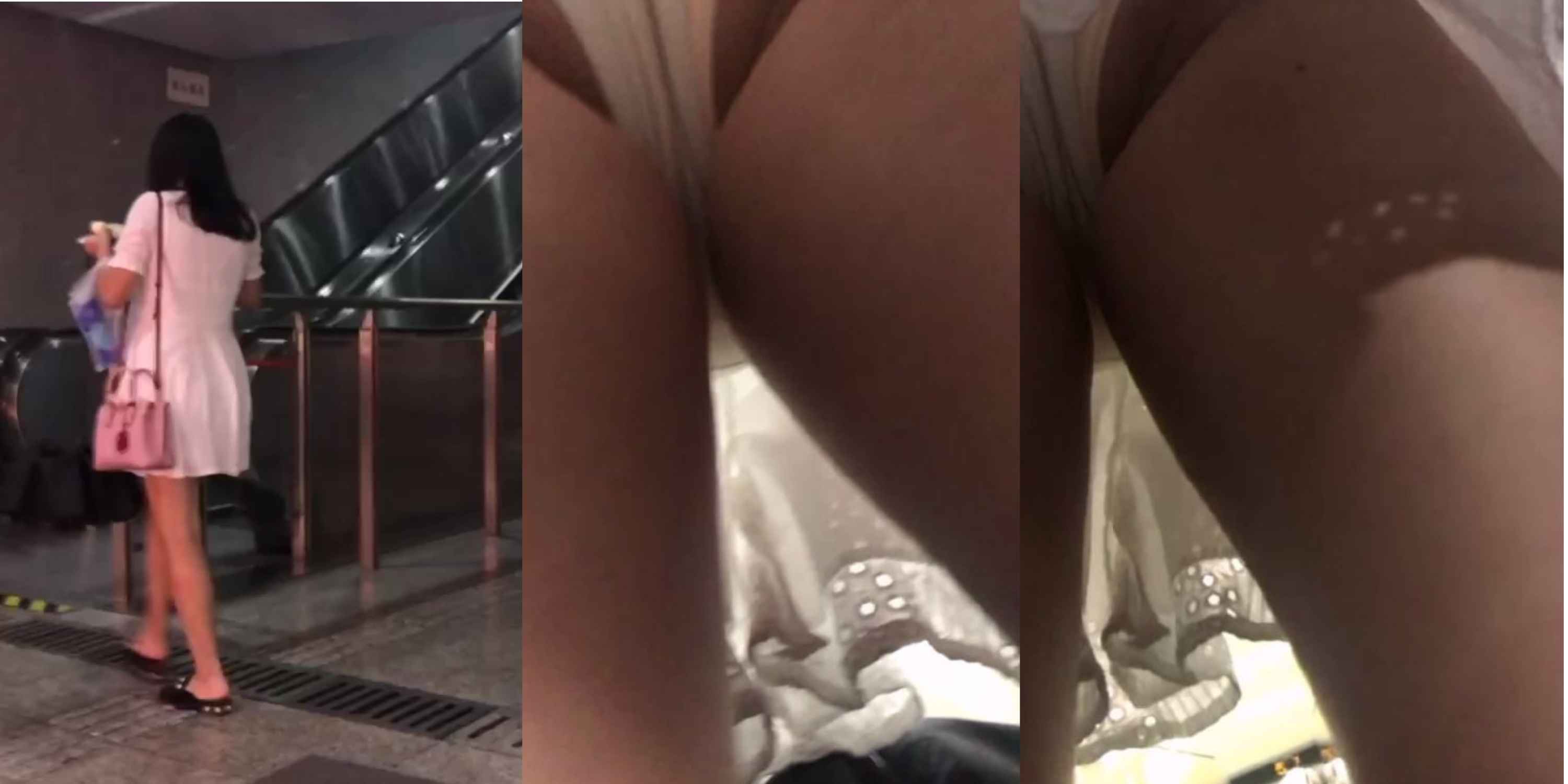 地铁扶梯灰色内裤美女抄底偷拍!灰色布料贴合腿间,臀部下沿压出轻微痕迹
