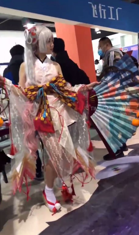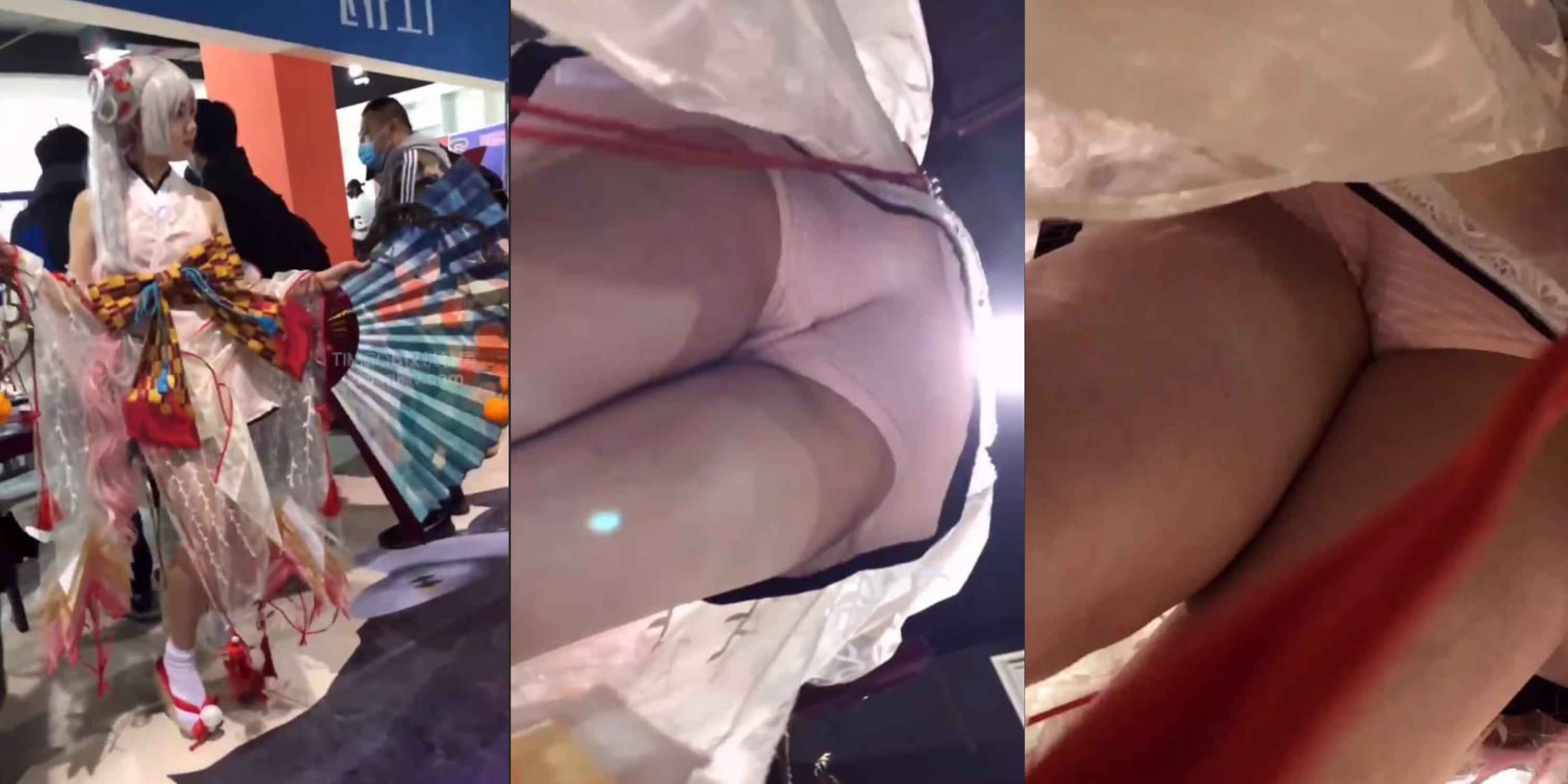 漫展粉色内裤coser抄底偷拍!白色蕾丝边嵌入臀部肌肤,腿间布料勾勒出紧致形状