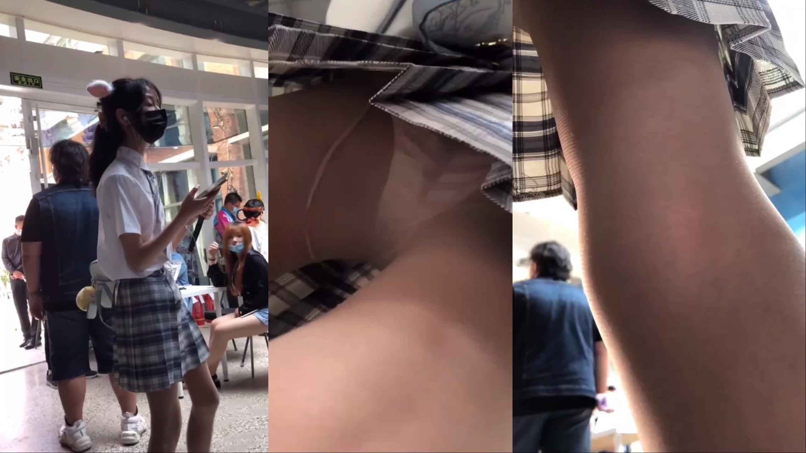 高颜值JK美女抄底偷拍!肉丝包裹红白条纹内裤,细带勒出臀部深沟肉感爆棚