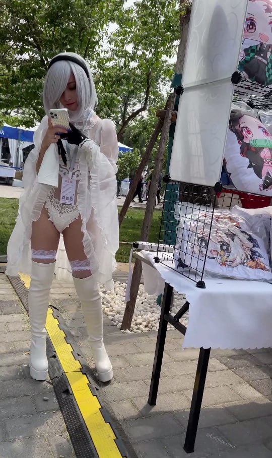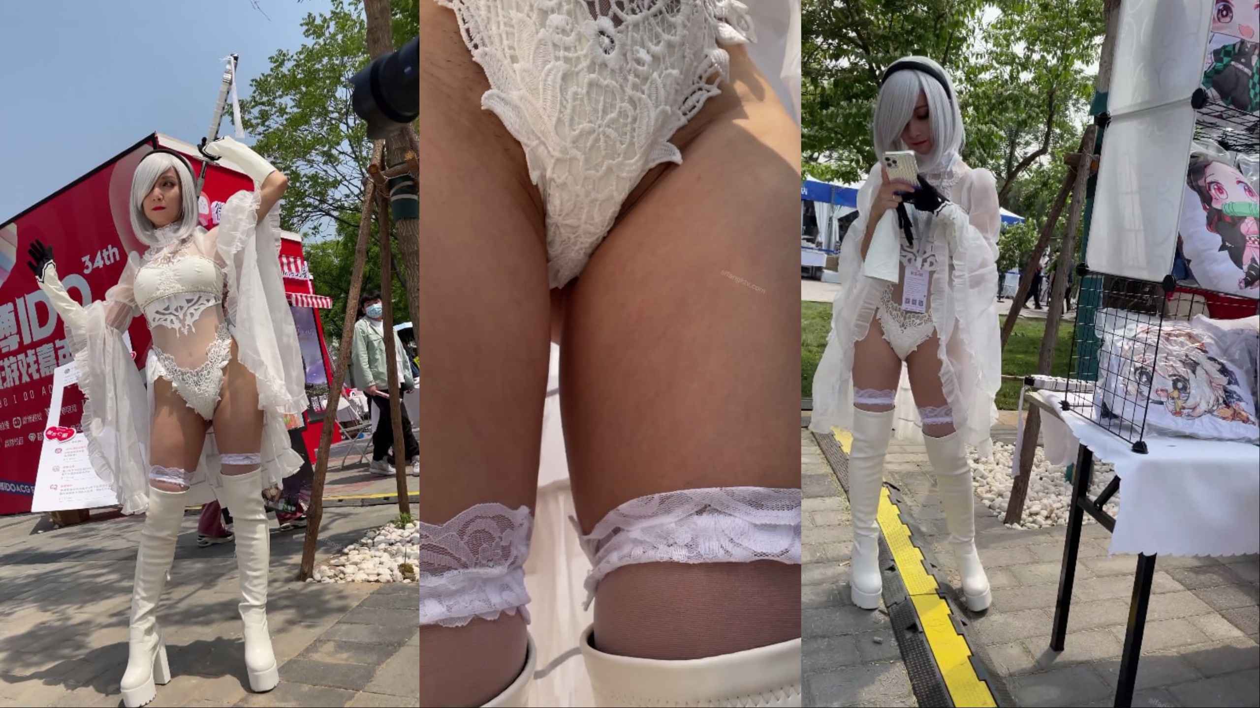 德国混血COS小姐姐白纱开放装,蕾丝底裤侧边毛发外露被低角度抄底全现